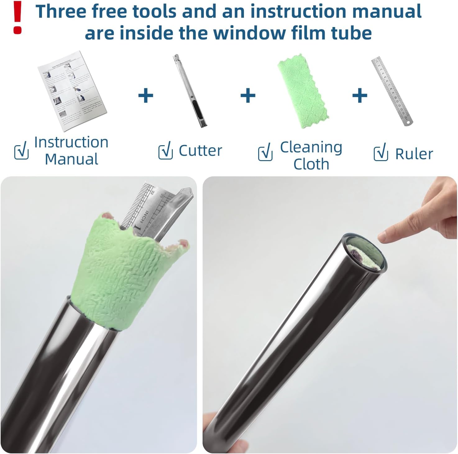 - TIPS: 1. Please note that the heat control window film may appear temporarily blurry after installation. After some time, the sun blocking window film will gradually regain clarity. 2.After installing the window heat blocking film, if you notice small bubbles/water stains that are difficult to remove, please be patient. These bubbles/water stains will naturally evaporate over time. ( The window tint looks brown when it is rolled up, but gray after it is installed. )