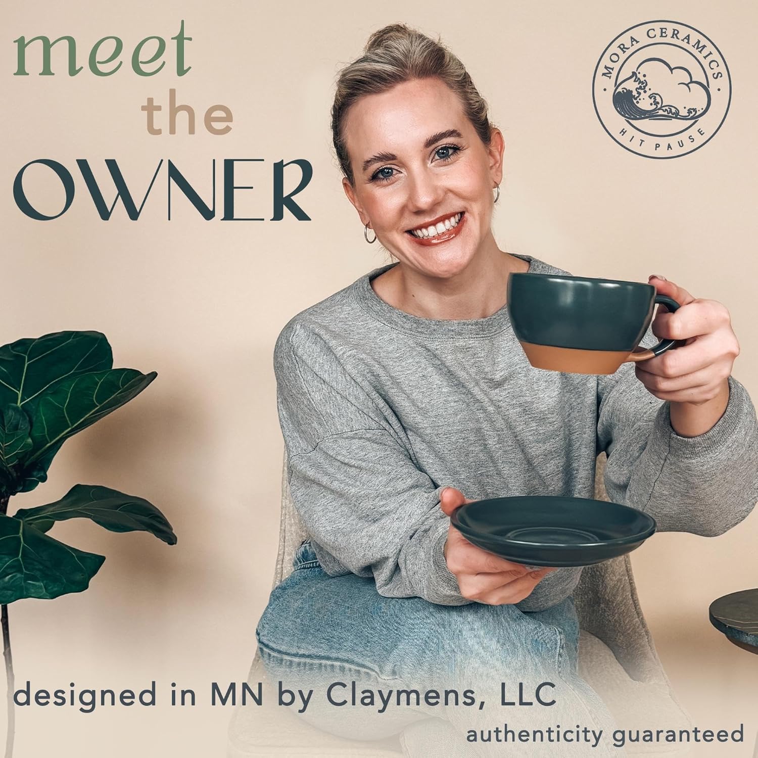 Mora Ceramic Latte Art Mug With Saucer - 10.5 oz, Round Bottom For Perfect Pours - Cafe Cups for Cappuccino, Espresso, Coffee, Tea etc - Porcelain Set for Baristas, Great Gift - Shadow Grey