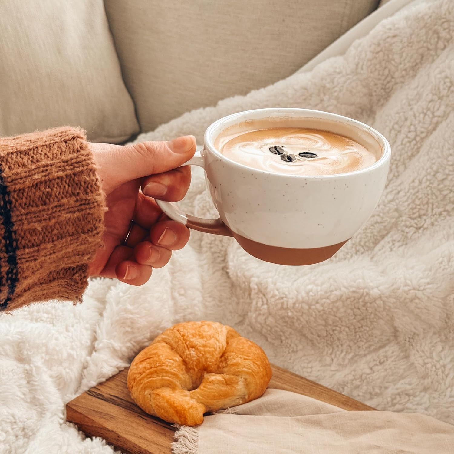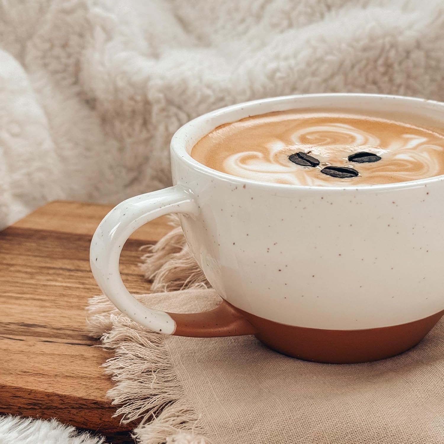 - DESIGNED FOR LATTE ART POURS: The shape of the mug has a large impact on "the perfect pour". This design offers a wide brim so there is more space to pour your design and a curved round bottom for ideal milk "flow", so you can start the latte art early in the pour. She also features thick porcelain to provide good insulation, be break resistant, and a pleasant mouth feel.