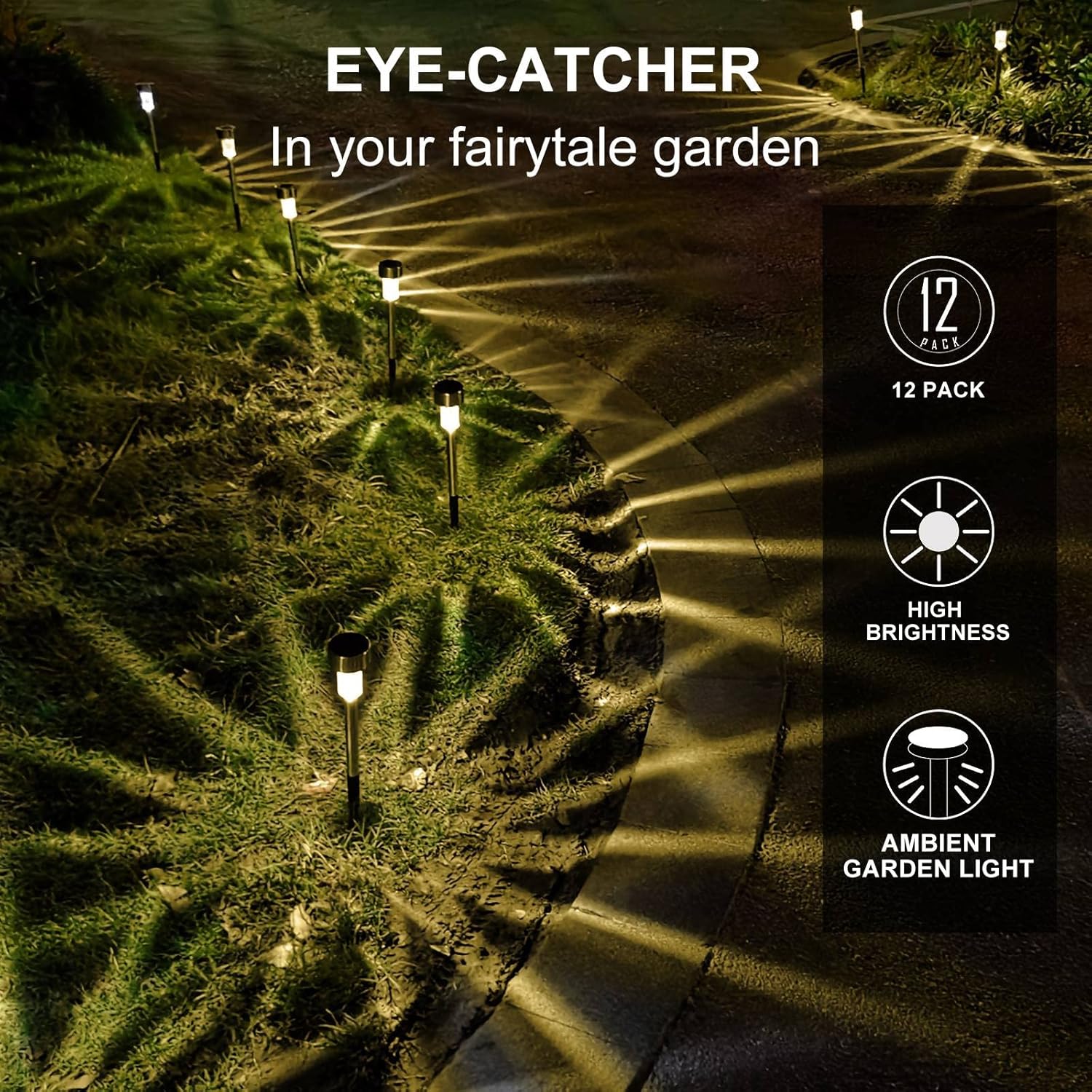 Solar Lights Outdoor Waterproof, Stainless Steel LED Landscape Lighting, Solar Garden Lights Solar Powered, Outdoor Solar Lights for Yard, Pathway, Walkway, Patio, Lawn - 16 Pack (Warm White)