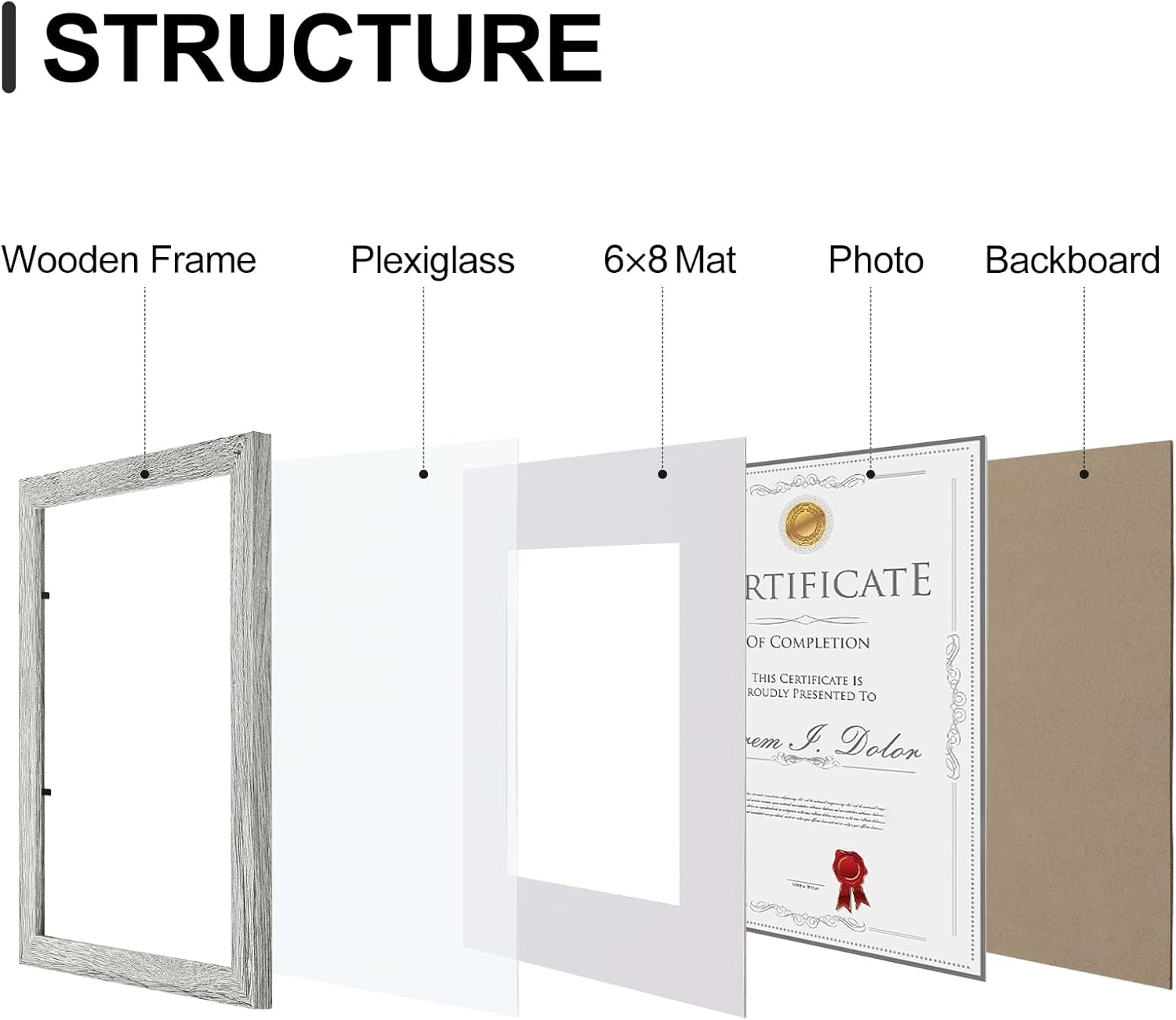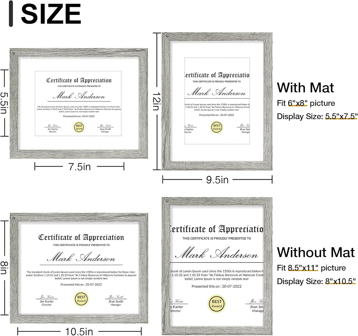 Vittanly 8.5x11 Picture Frames Set of 9, Shatter Resistant Plexiglass, Display 6x8 Pictures with Mat or 8.5x11 without Mat, Photo Frames for Wall or Tabletop, Engineered Wood, Grey