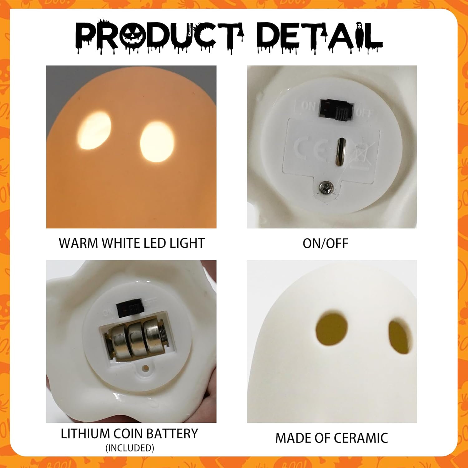 - Good-Quality and Durable: Each ghost light is made from ceramic to ensure durability and longevity. The flameless lantern design provides a safe and worry-free lighting option, making them ideal for indoor use in areas like bedrooms, living rooms, kitchens, and more.