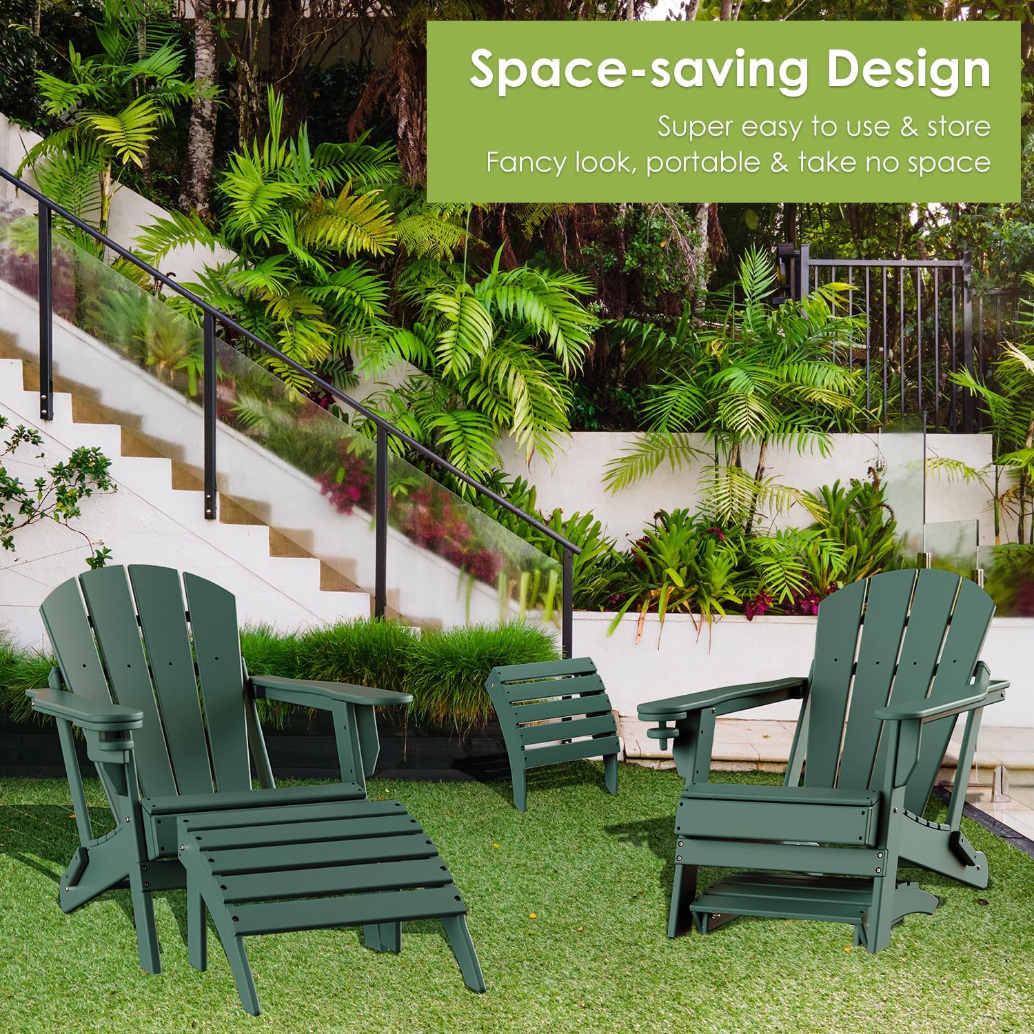 - 【Perfect Complement】 Introducing the GreenVines Adirondack folding ottoman, designed to provide ultimate comfort and relaxation both indoors and outdoors. This versatile ottoman is the perfect accompaniment to any Adirondack chair, sofa, or outdoor seating arrangement. Whether you're lounging on your front porch, garden, or poolside, this ottoman is sure to become your go-to spot to rest your feet and unwind. Its compact, folding design makes it easy to move around and store when not in use