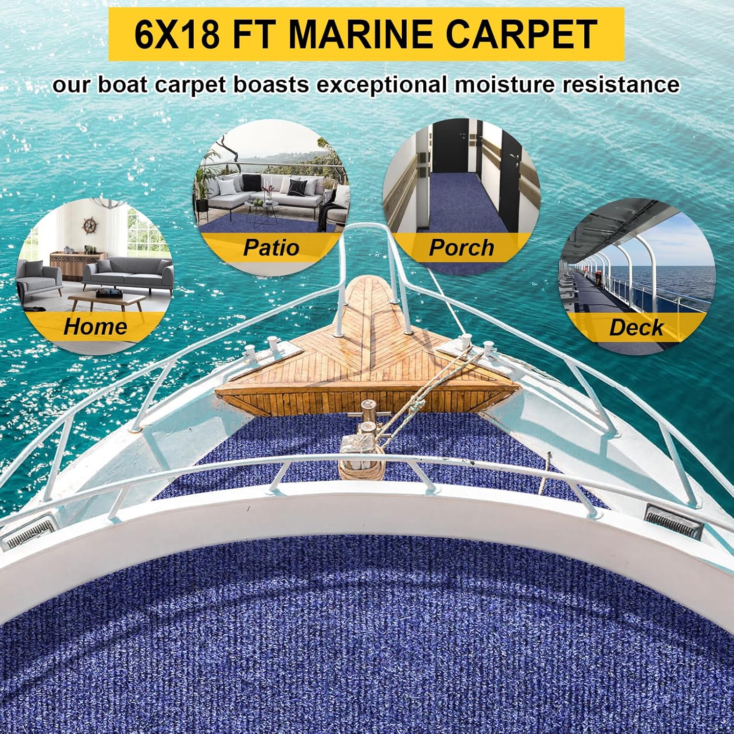 - Premium Indoor Outdoor Carpet: Color: Deep Blue; Size: 6 x 18 FT (1.8 x 5.5 m); Thickness: 0.2 in(5.0 mm). Crafted from high-quality polyester fibers, our boat carpet boasts exceptional moisture resistance, durability, shape retention, and colorfastness, ensuring a long-lasting and vibrant addition to your space.