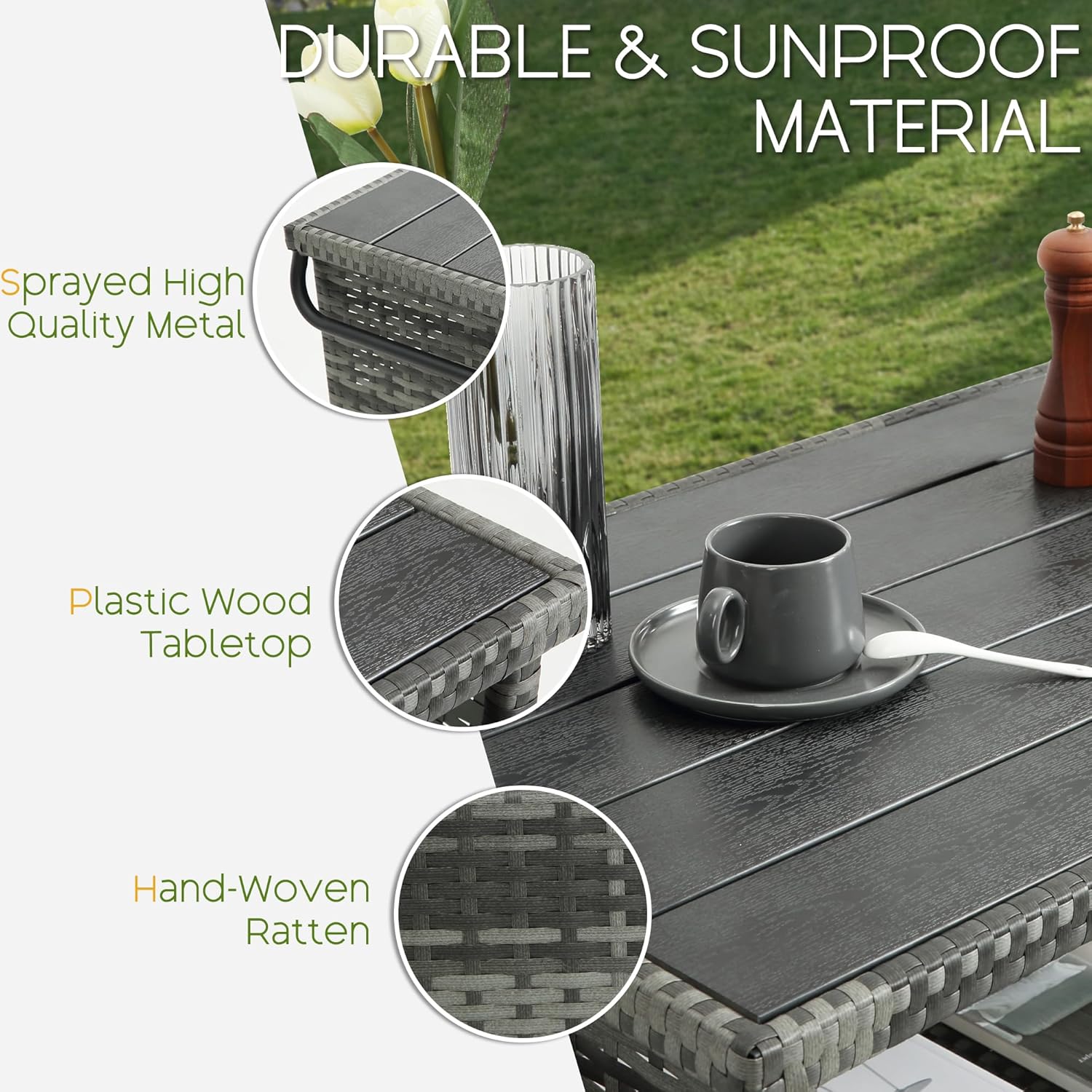 - PLASTIC WOOD TABLETOP: The backyard bar features a high-quality plastic wood tabletop; the baffle swivels to create two shelves for additional storage space; and can be cleaned with a simple wipe down