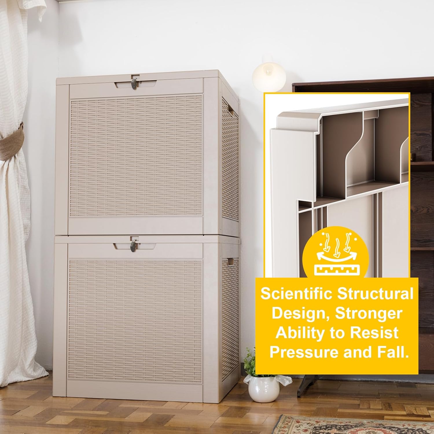 - šš®š«ššš„š ššššš«š¢šš„ - Made from high-quality resin material, this deck box provides unyielding protection for your belongings. With up to 1000 SGS UV protection, your outdoor storage box will never warp, fade, or crack. It withstands harsh weather, intense sunlight, and cold climates. Whether it's the sun-drenched summer or the stormy winter, your items will be safely stored, remaining in pristine condition.