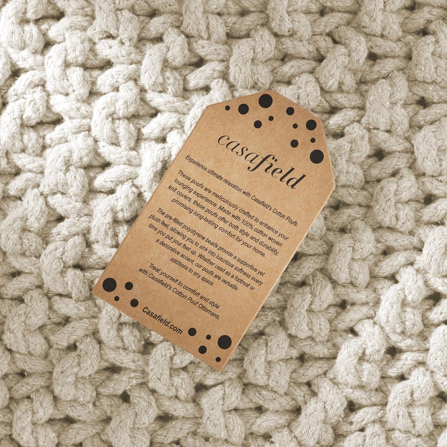 - Easy care, effortless style: Casafieldโs cotton pouf ottoman is low maintenance, requiring minimal care to keep it looking fresh and clean. It is easy to spot-clean and the resilient cotton fabric resists wear and tear, ensuring longevity even with frequent use. The soft yet sturdy construction makes it suitable for both adults and children, creating a relaxed living space for casual lounging.