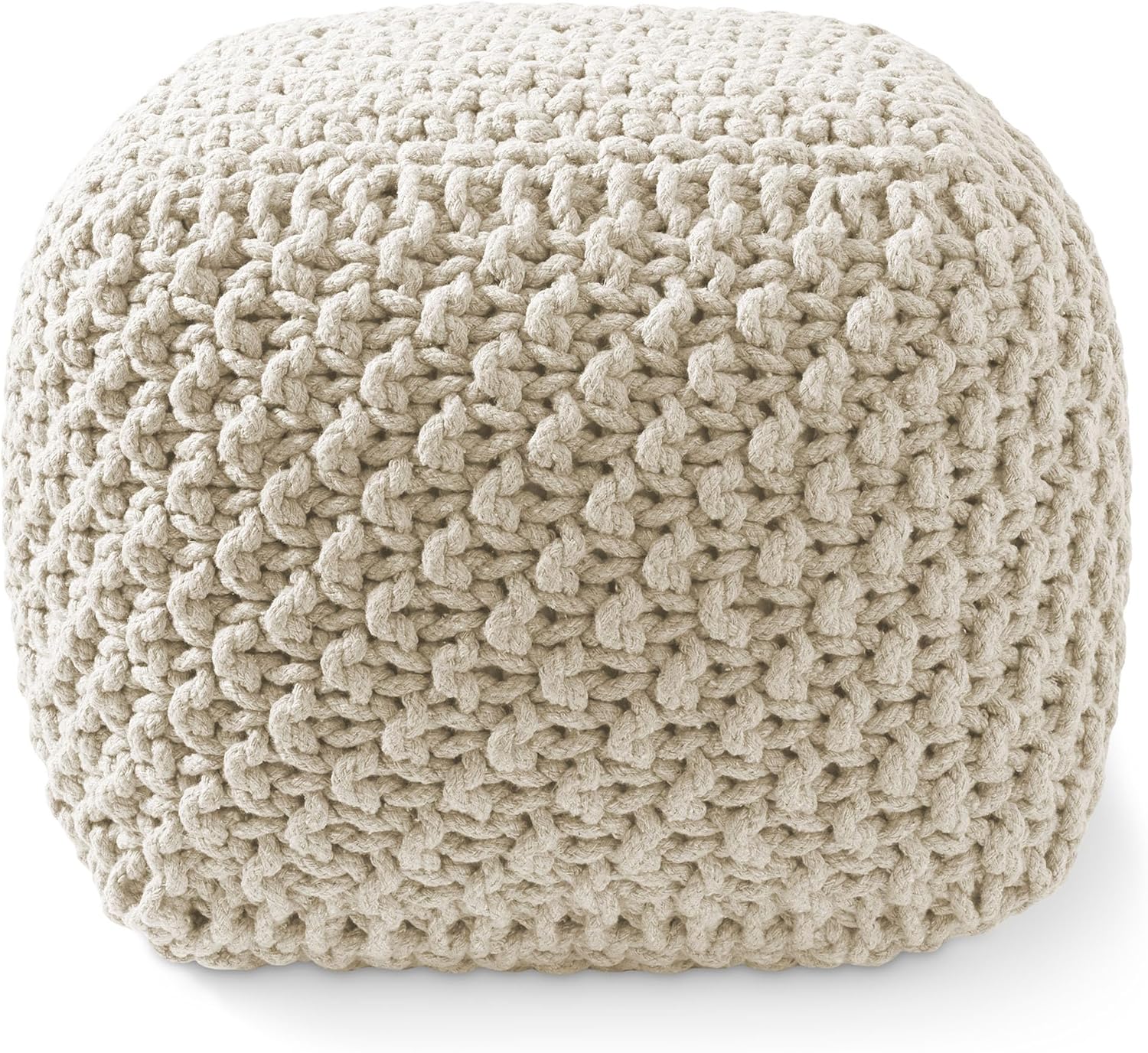 Casafield Square Pouf Ottoman, Natural - 18.5" W x 18.5" D x 14.5" H Cotton Knit Foot Stool - Boho Floor Pouffe for Living Room, Bedroom, Home Office
