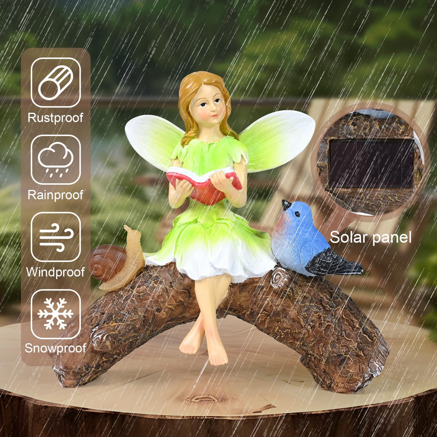 - 【WEATHER-RESISTANT DESIGN】This garden fairy statue is made from durable resin for long-lasting use.Hand-painted with vibrant colors and finished with a UV resistant coating. Able withstand all types of weather conditions including heavy rain and snow,resistant to fading, not easy to crack, waterproof ,keep your statue looking brilliant