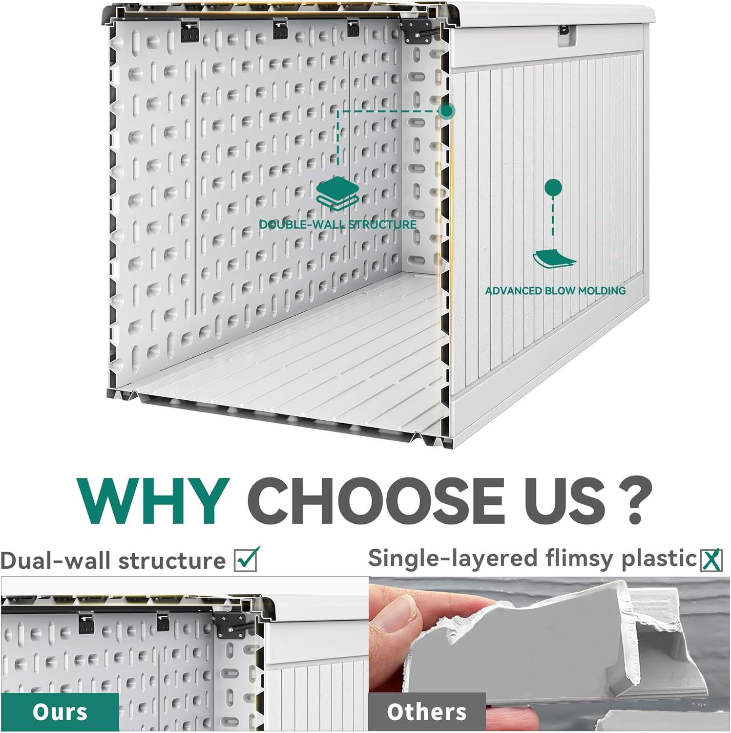 - MULTIPURPOSE GARDEN STORAGE:Doubles as an extra table or bench to accommodate six adults of up to 1000lbs., this deck box blends into any yard or patio while storing patio cushions, gardening tools, pool supplies, etc