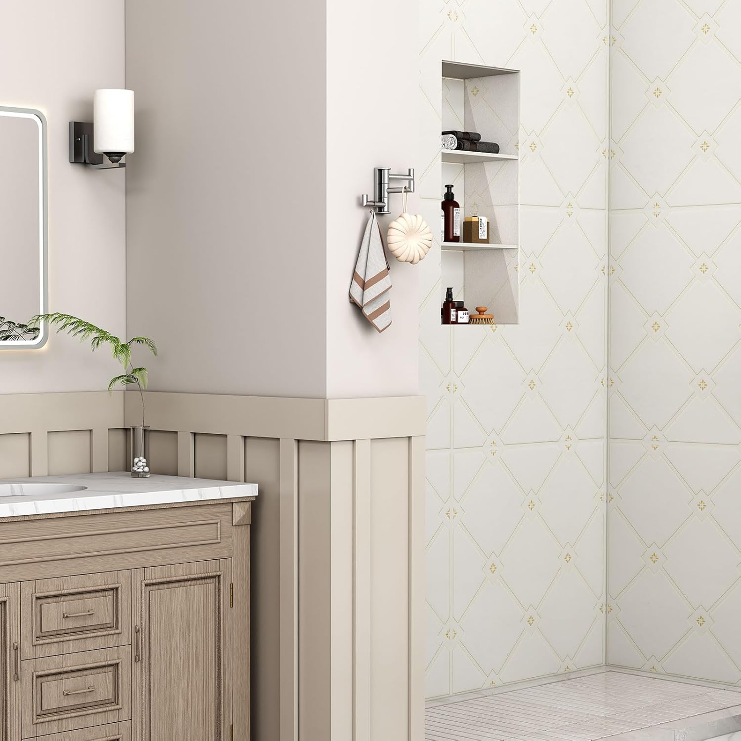 - ADD EXTRA STORAGE: swivel towel hook is a life-efficient accent, with 3 arms allowing for at least 3 items to be hung at once, which not only eliminates clutter but also saves space