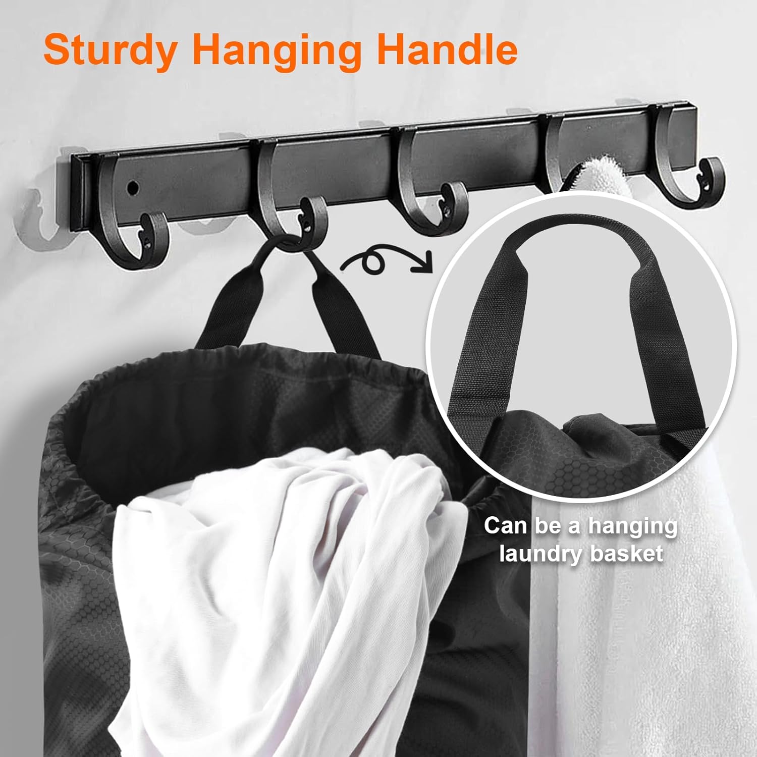 - EASY TO USE - The top of the backpack laundry bag is designed with a durable webbing handle, which can also be used as a hanging loop for easy hanging. It can be hung on the door or wall to serve as a practical laundry basket to collect dirty clothes.