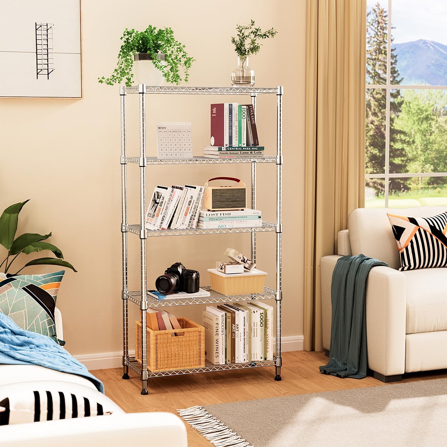 MZG 1750 lbs 5 Tier Storage Rack Metal Wire Shelving Unit, Storage Standing Household Shelf Organizer for Kitchen Pantry Closet Garage Basement Utility Room, Chrome 15.8" D x 45.3" W x 70.4" H