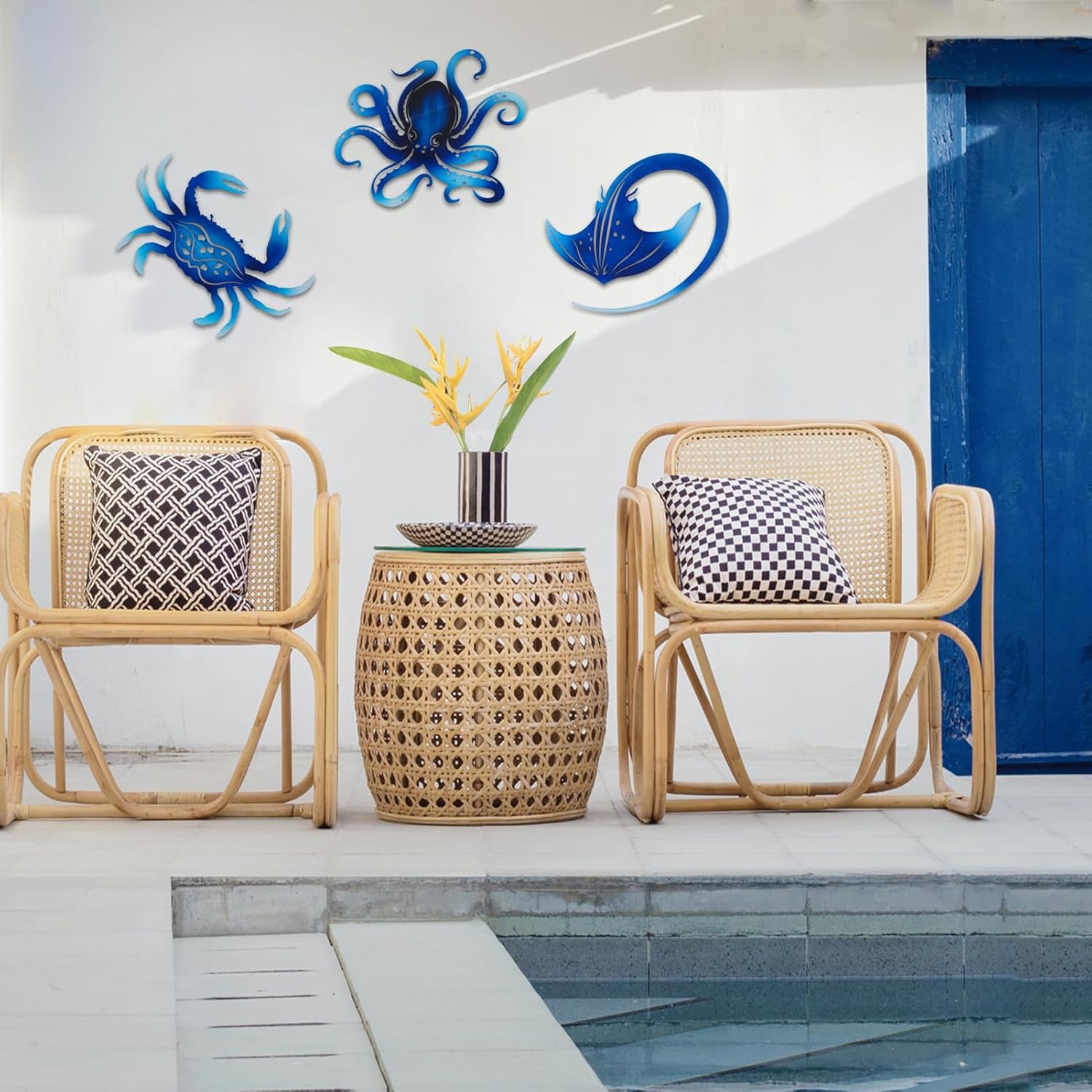 Metal Octopus Crab Manta Ray Coastal Nautical Ocean Decor Outdoor Metal Wall Art Decor Garden Pool Patio Bathroom Yard Farmhouse Fence Deck