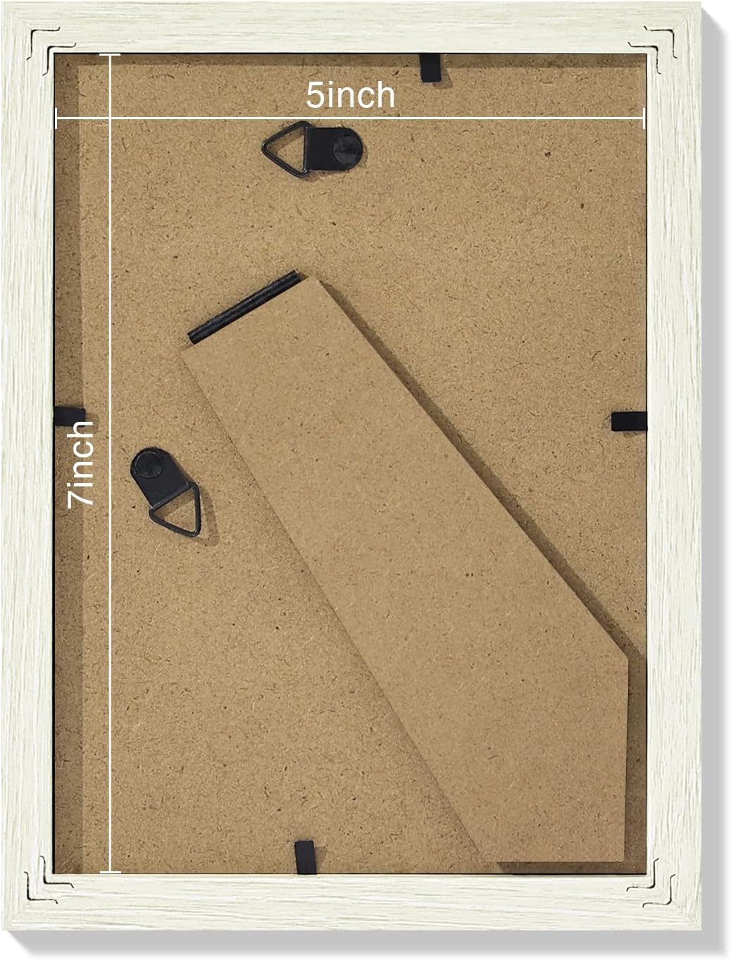 - Wall Hanging and Tabletop Display: Our 5x7 frames feature hanging hooks and an easel back for easy wall mounting or tabletop display, horizontally or vertically. Each set includes hanging nails for effort and less photo display