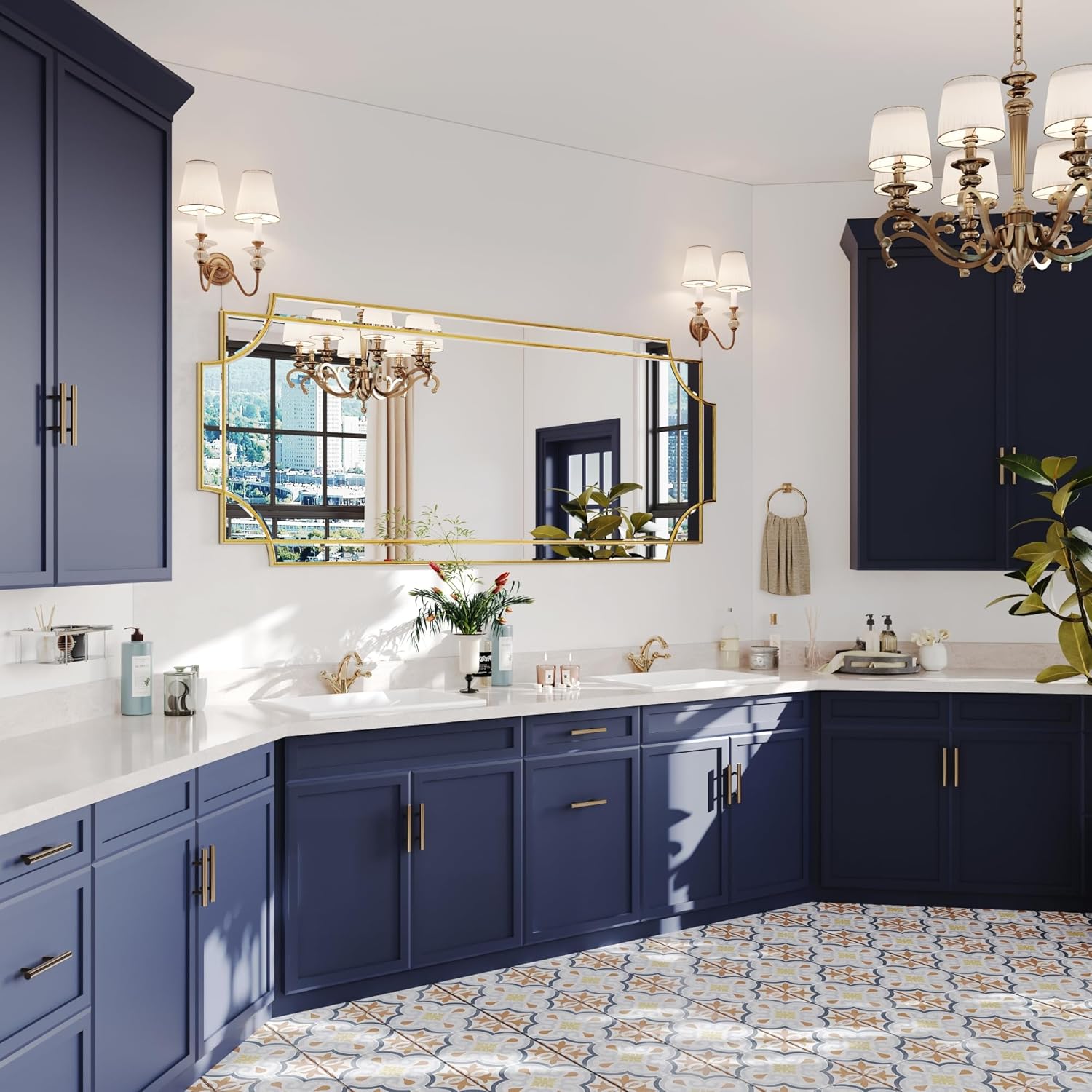 - UNTIQUE DESIGN. If your want some intricacies/interest to the pattern - not just a simple round or rectangle, this mirror will definitely be your perfect choice. Its sophisticated cutout corner accents along the inner and outer edges of the frame complete the look with added decorative detail. It will be a beautiful addition to any wall and an essential element in your home decor.