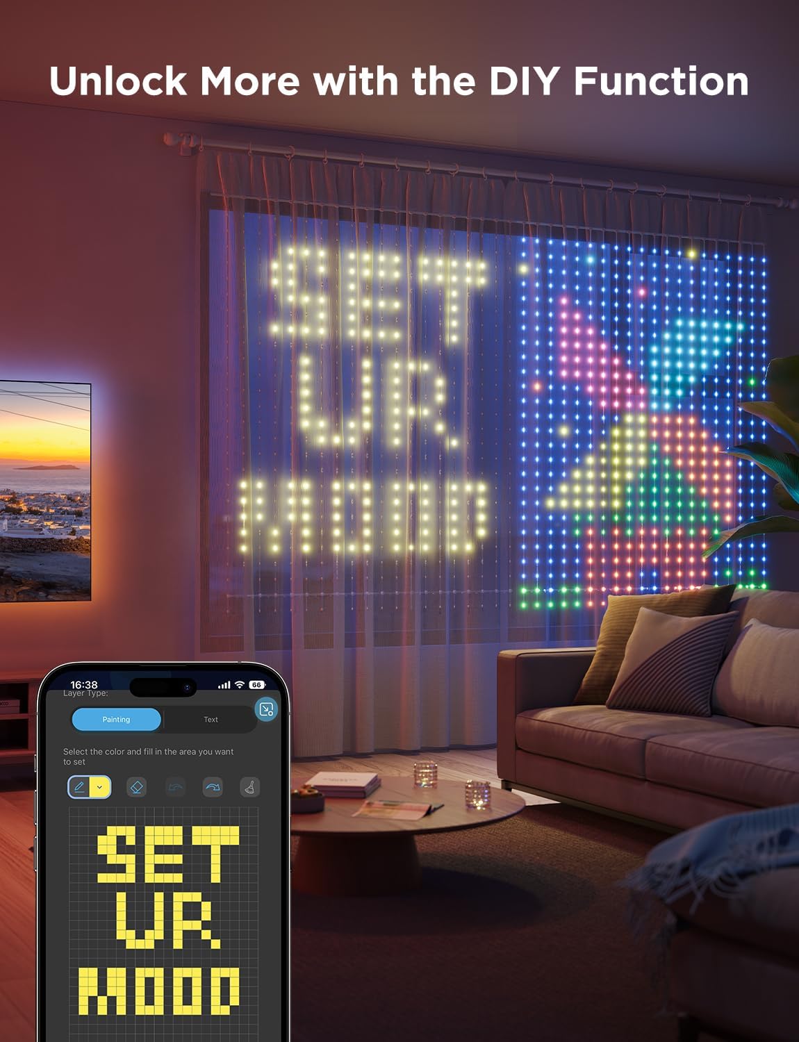 Govee Curtain Lights 2, Smart LED Curtain Light with DIY GIF AIGC, 1040 LEDs, RGBIC Color Changing Christmas Lights for Holiday Bedroom Window Dynamic Decor, Outdoor IP65 Waterproof, 9.8×6.6ft