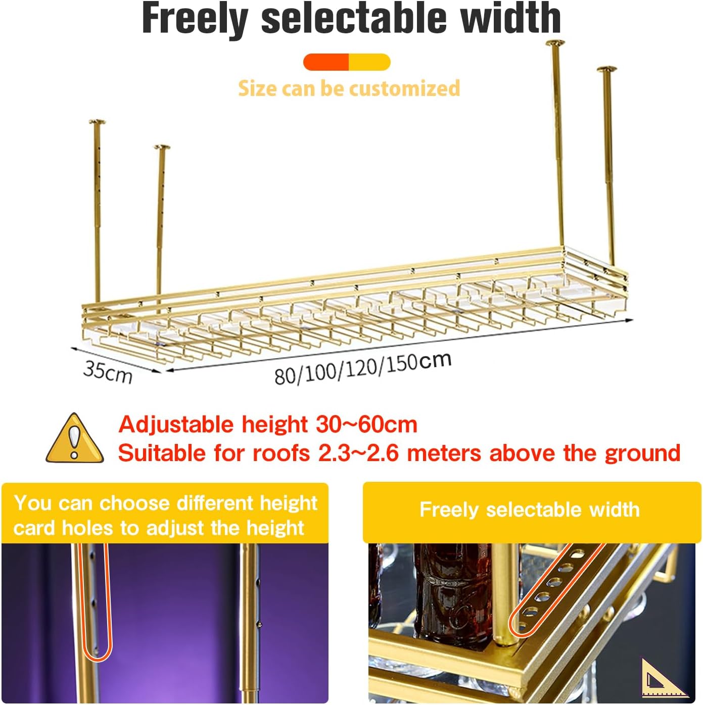 Ceiling Wine Rack&Hanging, Adjustable Hanging Wine Rack with Acrylic Board for Bar Cafe Kitche, 47''x13.8'' Iron Hanging Wine Glass Racks, Wine Bottle, Goblet Stemware Rack, Mug Rack-Gold