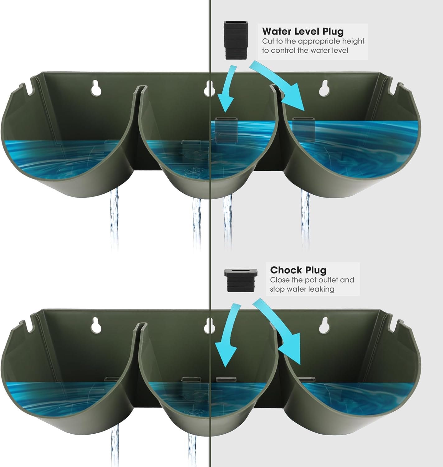 - STACKED VERTICAL DESIGN: The water filtration system from top to bottom can effectively save and retain moisture; Includes 6x water filter panels used to prevent leaves and solid impurities from blocking the outlet of the pots, 24x water level plug used to control the water level and 24x chock plugs to close the pot outlet and stop water leaking