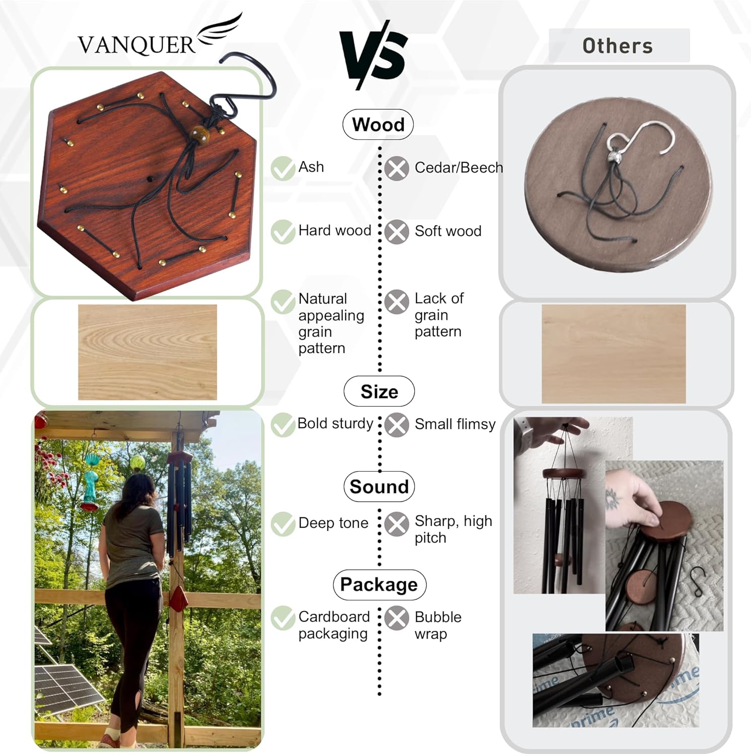 Vanquer Large Wind Chimes for Outside Deep Tone - 46'' Wind Chimes Outdoor Clearance, Windchimes Outdoors, Memorial, Sympathy Gift, Patio, Home Décor, Vintage Black (46" Ash Wood)