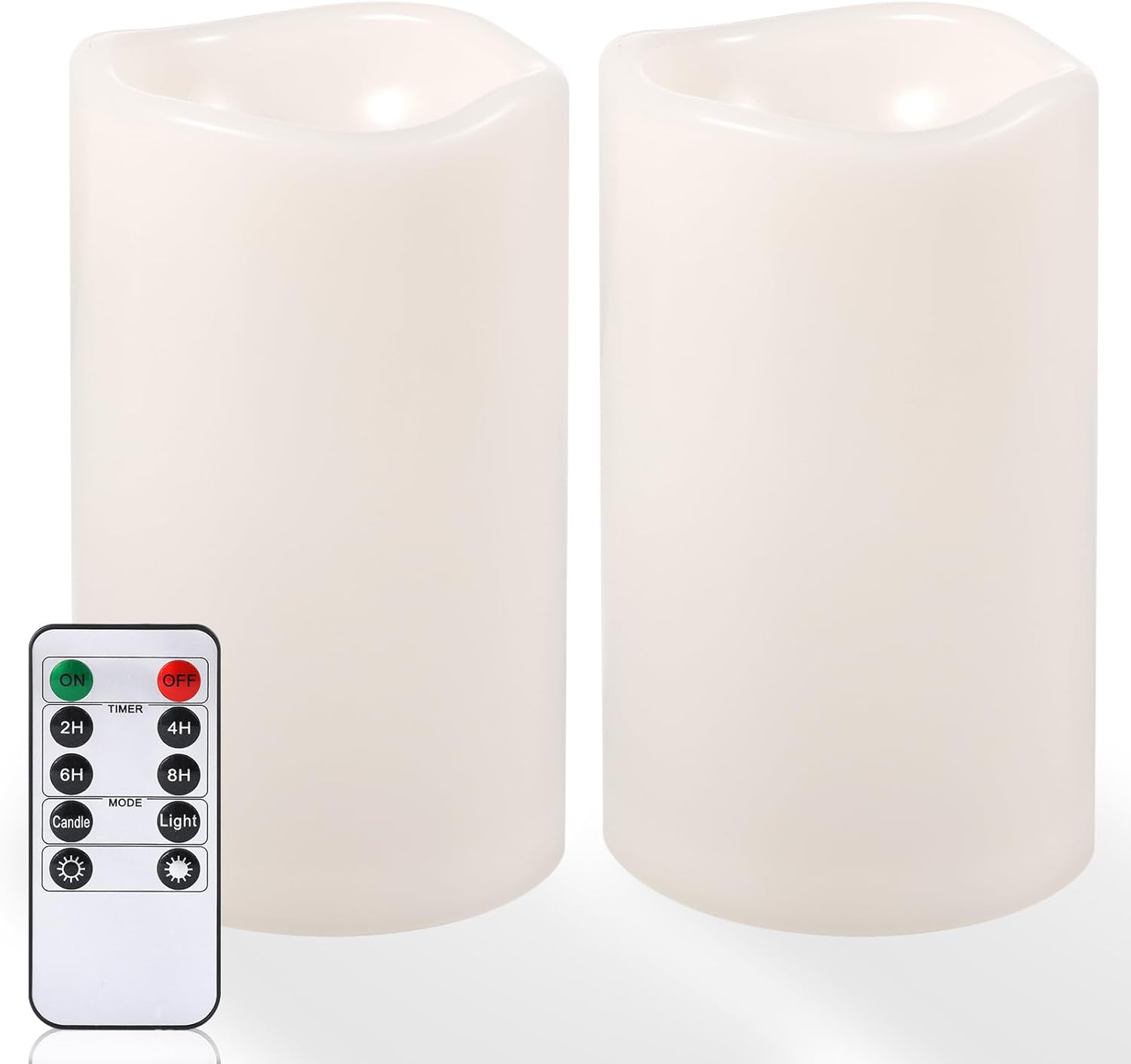 - EASY TO CONTROL WITH REMOTE: Easily turn ON/OFF your timer candles with the switch on the bottom. The Remote Control offers timer options of 2H/4H/6H/8H, saving the trouble of manual operation. Enjoy automatic lighting at the same time every day. Customize light modes (flicker or steady glow) and brightness level to suit your preferences