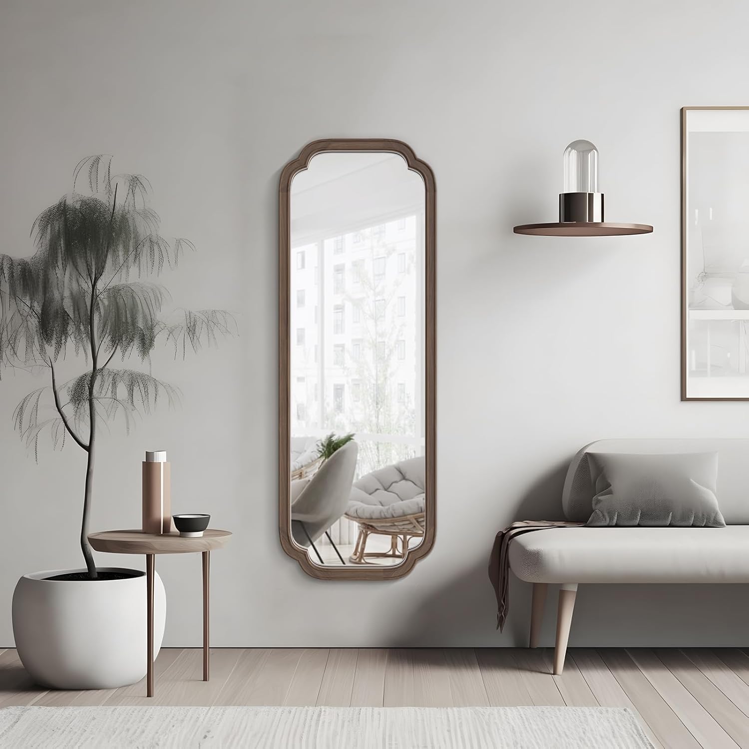 WallBeyond Full Length Mirror Wall Mounted 43"x16", Rustic Wooden Frame Floor Mirror, Large Full Body Mirror for Bedroom, Leaning or Hanging Against Wall (Walnut Solid Wood)