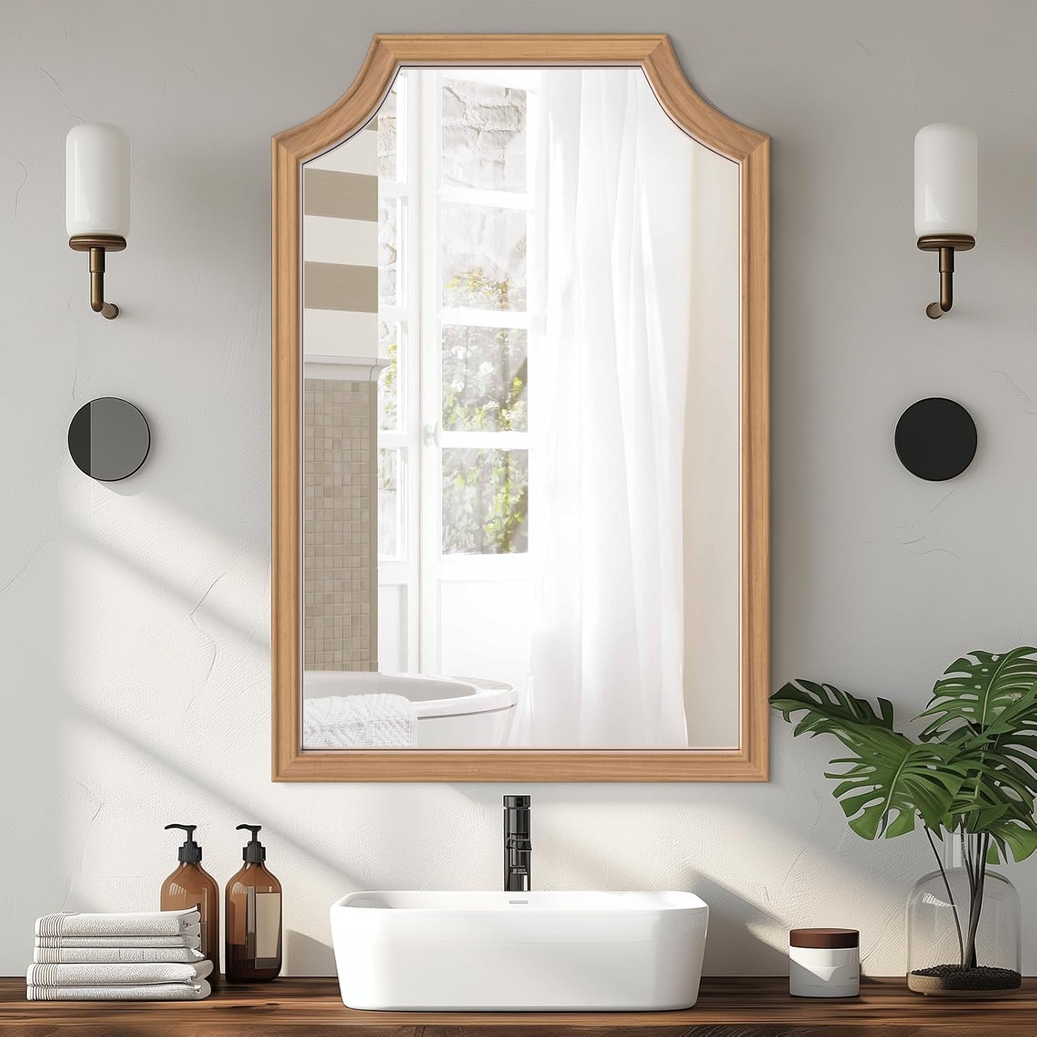WallBeyond Scalloped Wood Mirror for Small Bathroom Vanity 20x30 Inch Rectangle Wall Mirror Decor for Hallway Bedroom Living Room Home (Honey-Colored)