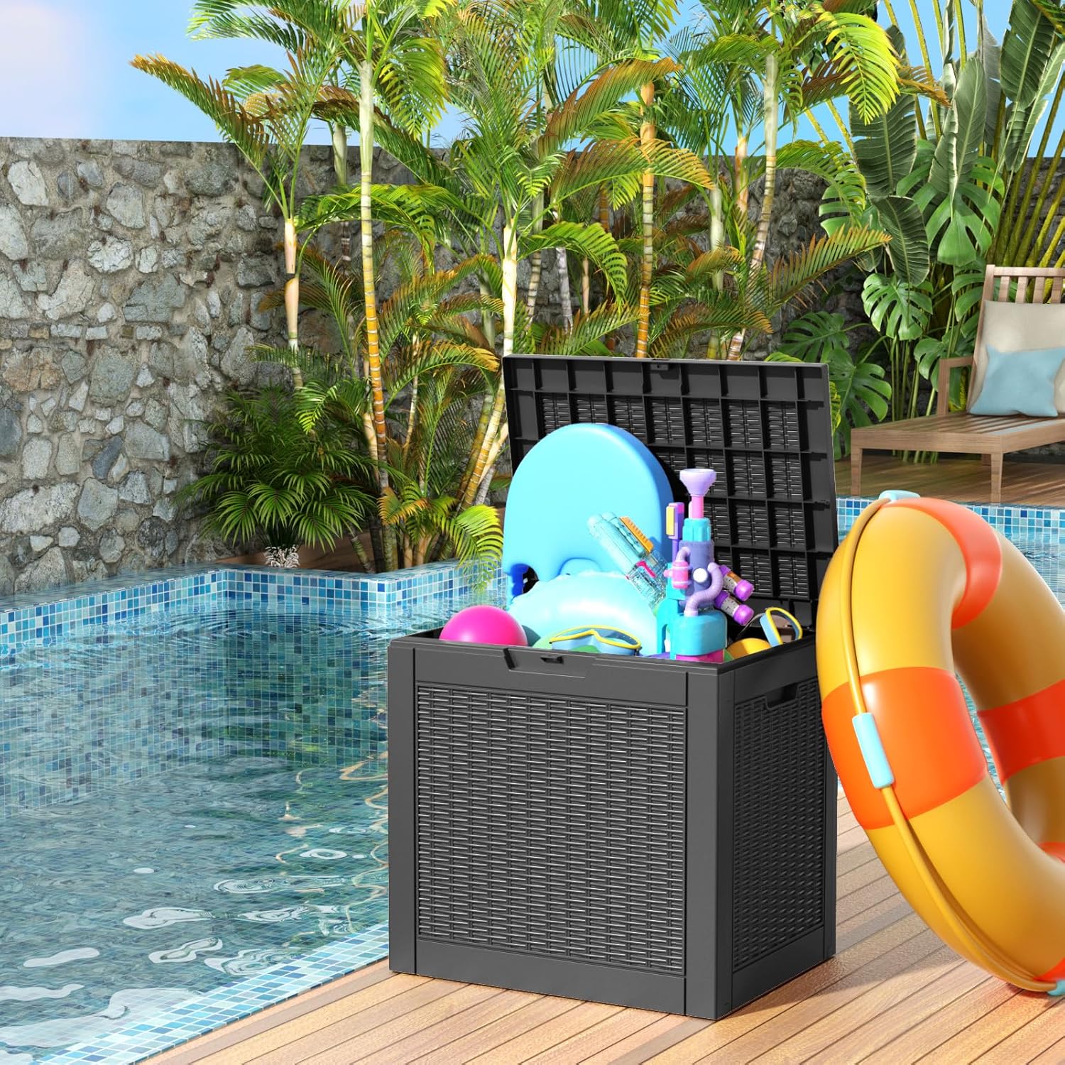 - ENHANCED DESIGN: The exterior of this outdoor storage bin is designed with a floral pattern, making it a great accent for patios, gardens, courtyards, porches and poolside.