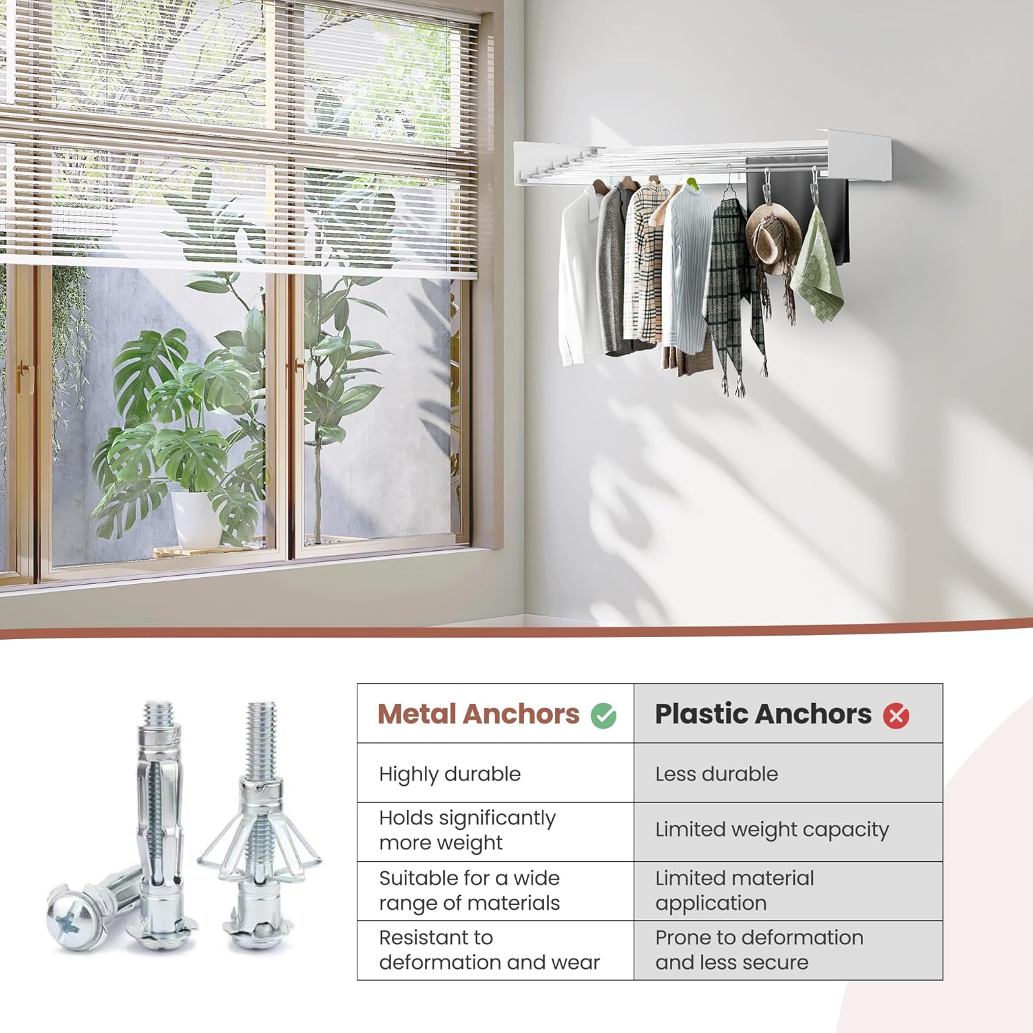 - Foldable Space-Saver – Sleek wall-mounted drying rack folds flat against the wall when not in use, freeing up floor space in laundry rooms, patios, or balconies.
