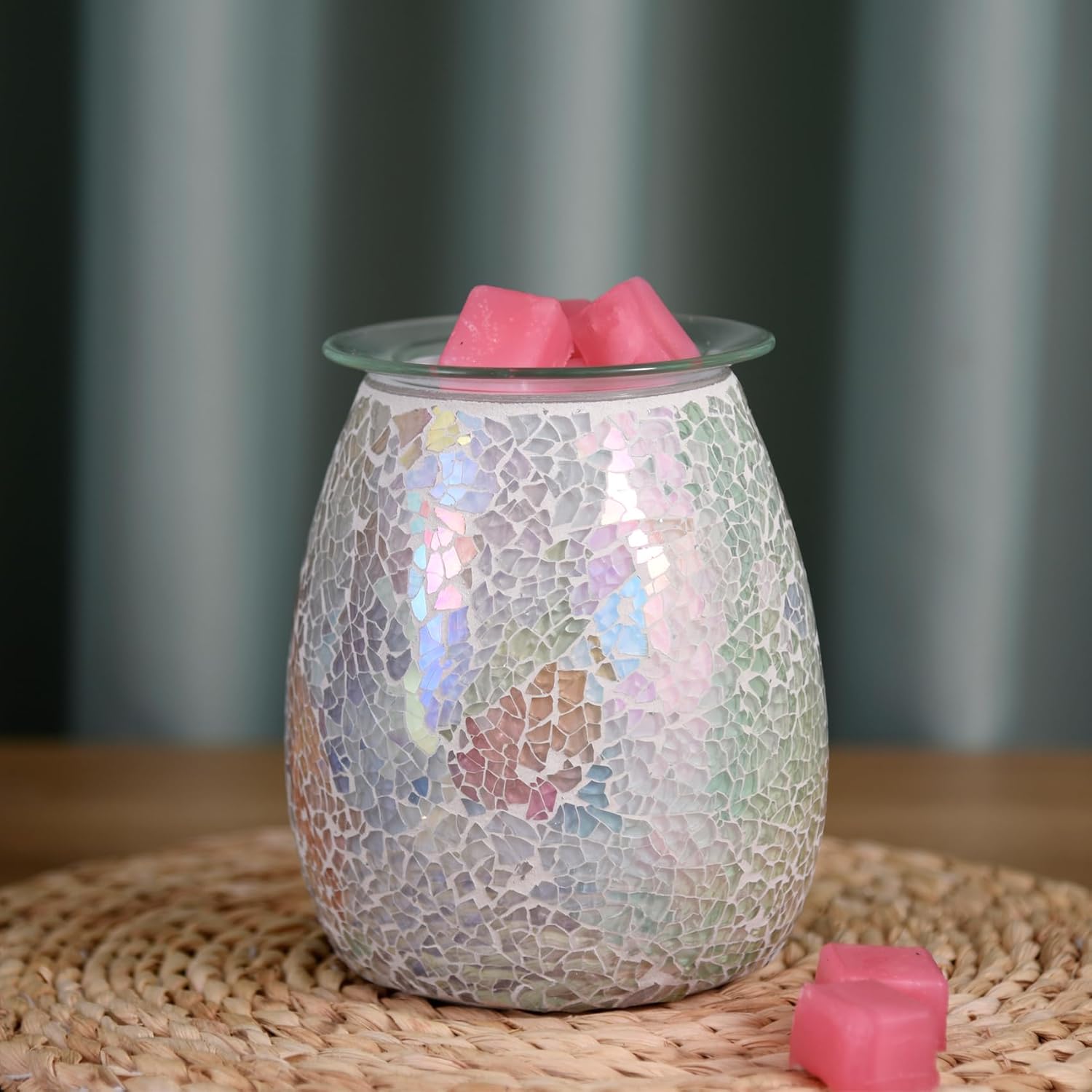 Dicimi Glass Wax Melt Heater, Candle Heater, Mosaic Electric Fuel Burner - Incense Wax Cube Melting and Burner - Home Electric Air Freshener Art Present (Light Color)