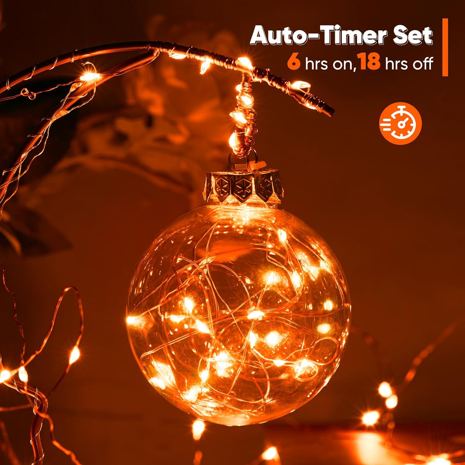 4 Pack 65.6 Ft. Battery Operated Outdoor String Lights with Remote & Timer, LED Orange Fairy Lights, Waterproof Twinkle Lights for Bedroom, Dorm, Mason Jar, Wedding, Party, Christmas