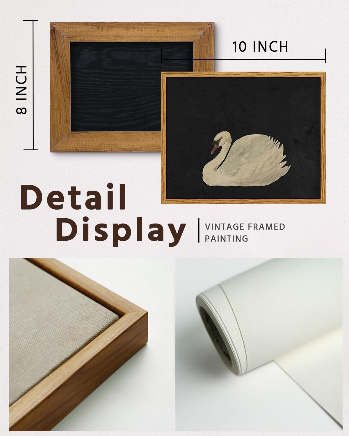 - VINTAGE SWAN OIL PAINTING: Elevate your living space with VIYYIEA swan art canvas wall decor. The swan is gracefully floating on a dark background that accentuates the purity and elegance. The frame around the swan wall art painting adds a sense of classic sophistication. The combination of the black and the luminous swan creates a striking contrast, highlighting the serene beauty of the bird, making it a timeless captivating piece.