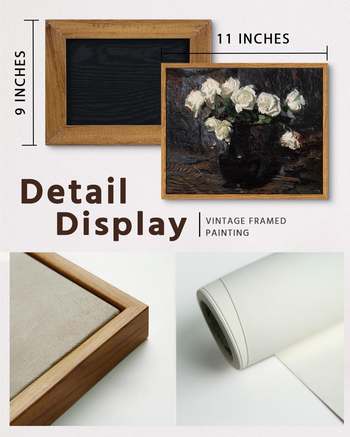 VIYYIEA Framed Canvas Wall Art Home Decor Vintage Botanical Prints White Roses in Vase Rustic Farmhouse Flower Wall Decor Mid Century Pictures Decor Art Prints Floral Room Decor for Living Room 9x11in