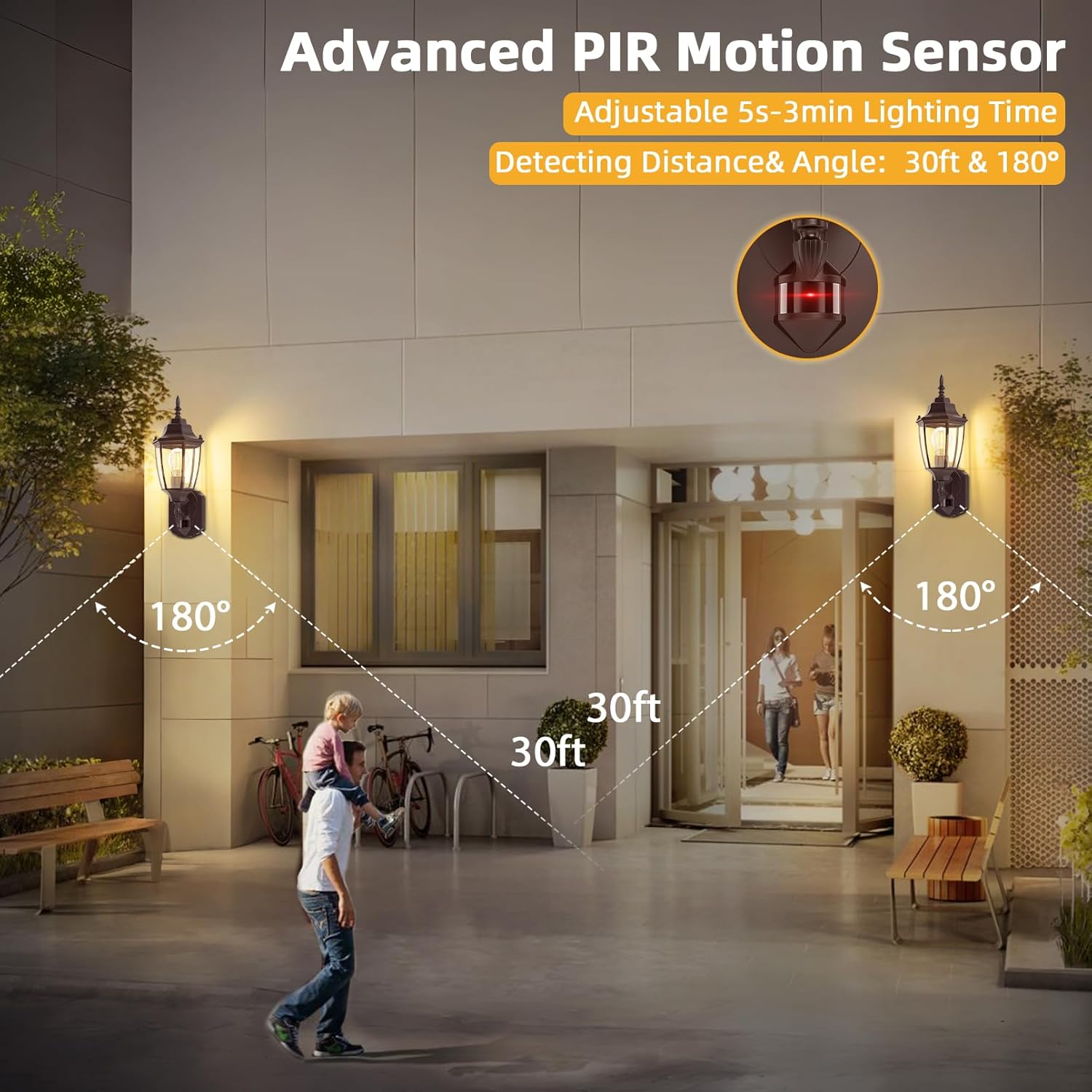- Classic Style & Wide Application: Our outdoor lights are designed with classic finish, won't look outdated in a few years. It is not only a versatile motion porch light but an excellent addition to brighten up your doorway, backyard, porch, garage etc