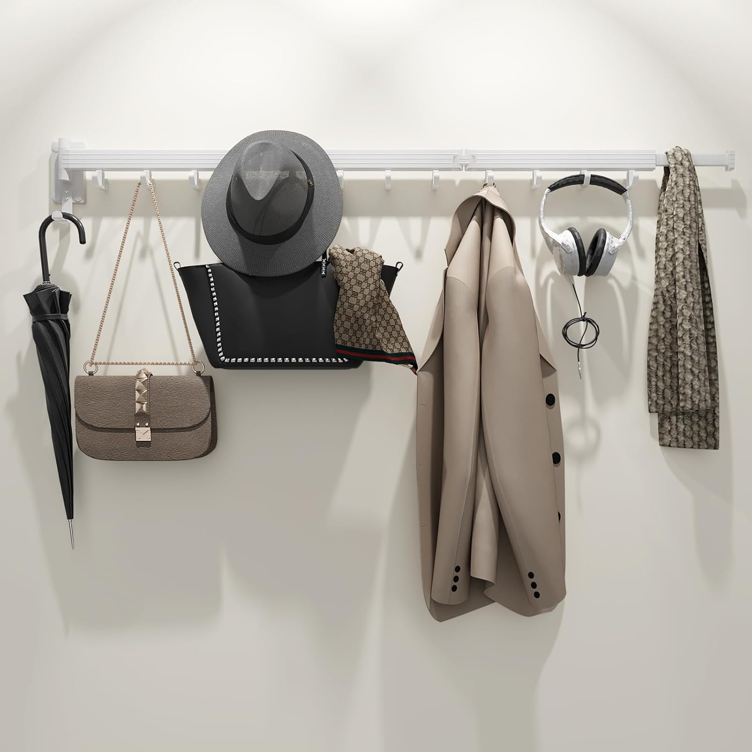 - ā Upgrade Dual-J-Shape Hooks Design -- Our clothes drying rack features an innovative design with dual J-shaped & circular hooks, providing you with versatile hanging options. The additional large hooks and extendable rods make it easy to hang a variety of items with ease. Maybe you will fancy this wall-mounted clothes rack, as it brings convenience and efficiency to your daily life.