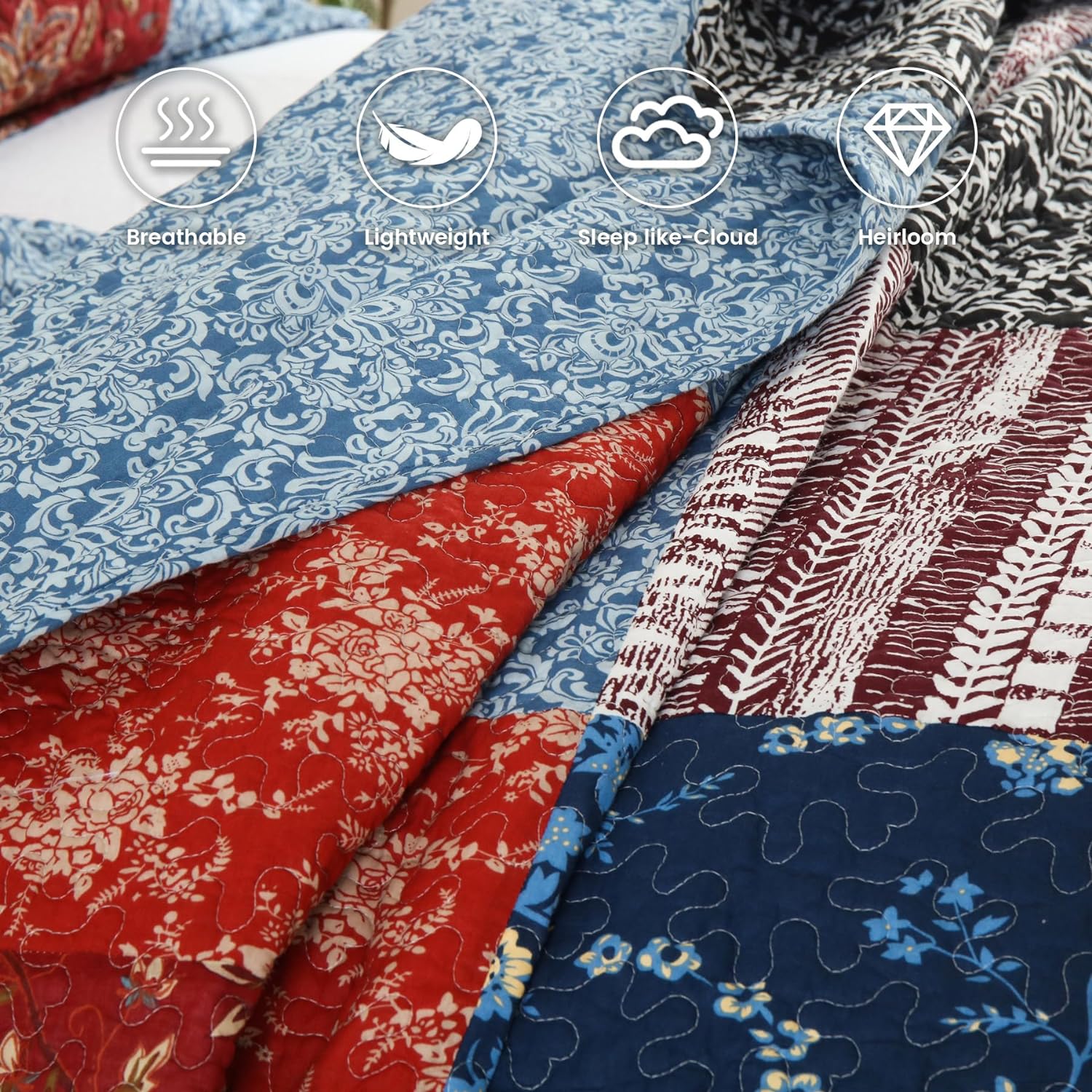 - Elegance in Home Decor: This bedding set includes a cal king-size quilt (120x110 inches) and two matching pillow shams (20x36 inches), all crafted with precision. The Secgo comforter set combines patchwork craft with boho patterns, elevating your sleeping space to new heights. Surprise your loved ones with this elegant, cozy gift—ideal for Mother's Day, Women's Day, Christmas, or any special occasion.