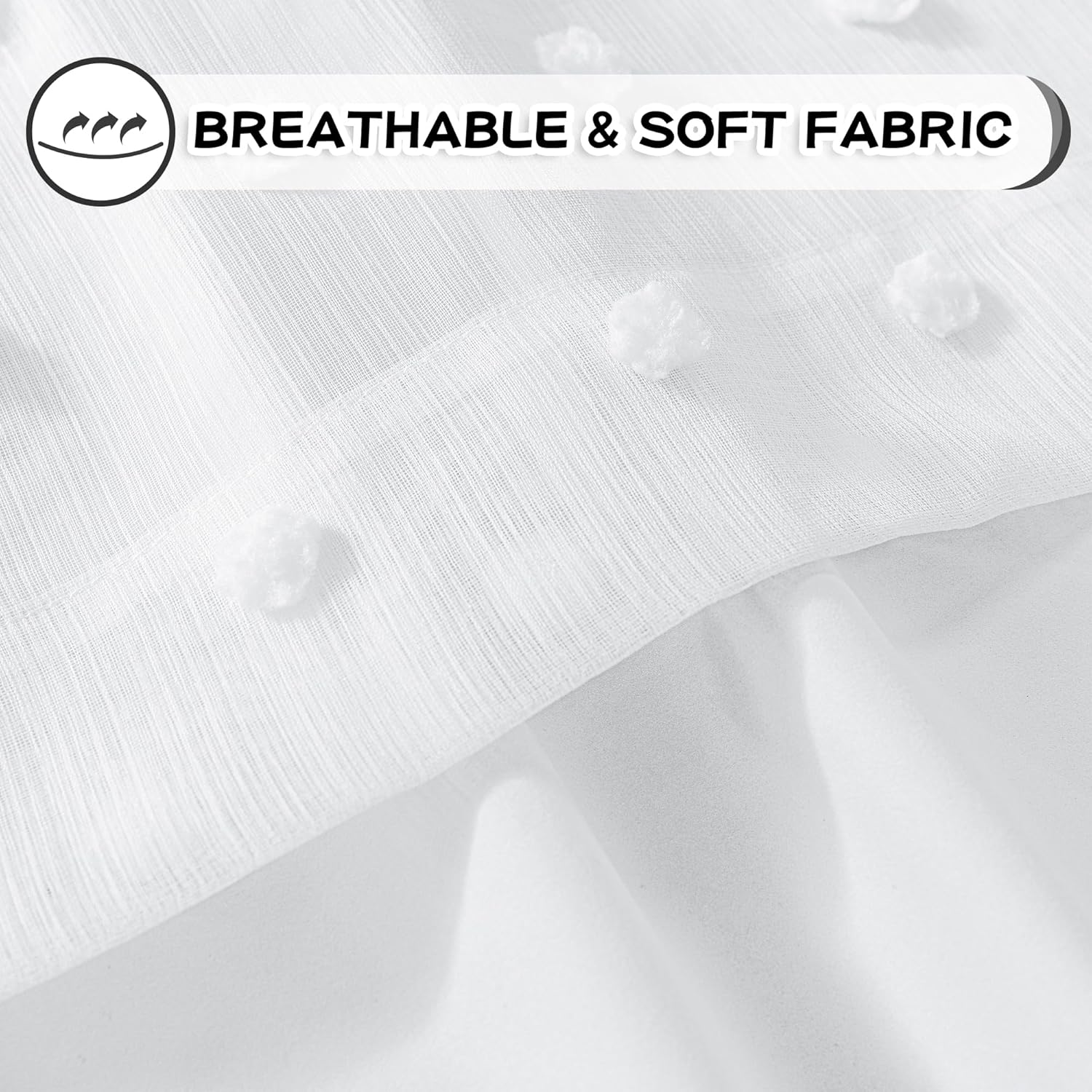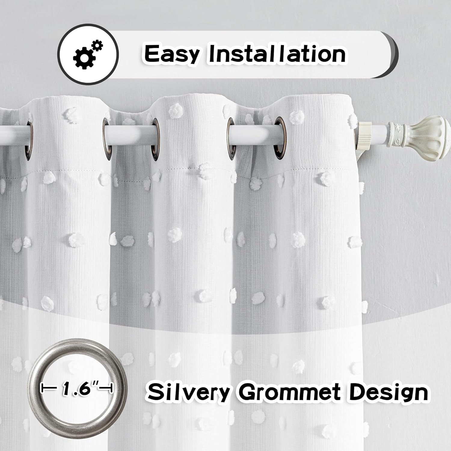 - Unique Design:These cute pom poms combine bohemian elements with modern style. The white sheer curtain is embellished with cute pom poms, adding interest, glamour and a beautiful look to your windows.
