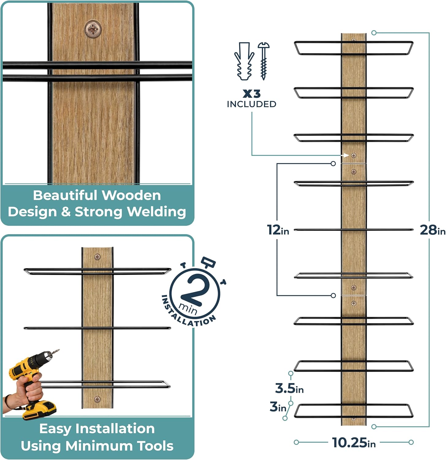 - Vertical Organization: Wine Rack Display multiple racks vertically to gain more space - Minimal assembly, hang in minutes! 3 Piece Wall Wine Rack mounts securely to the wall with installation holes on the back - Kitchen towel rack mounting hardware and instructions are included