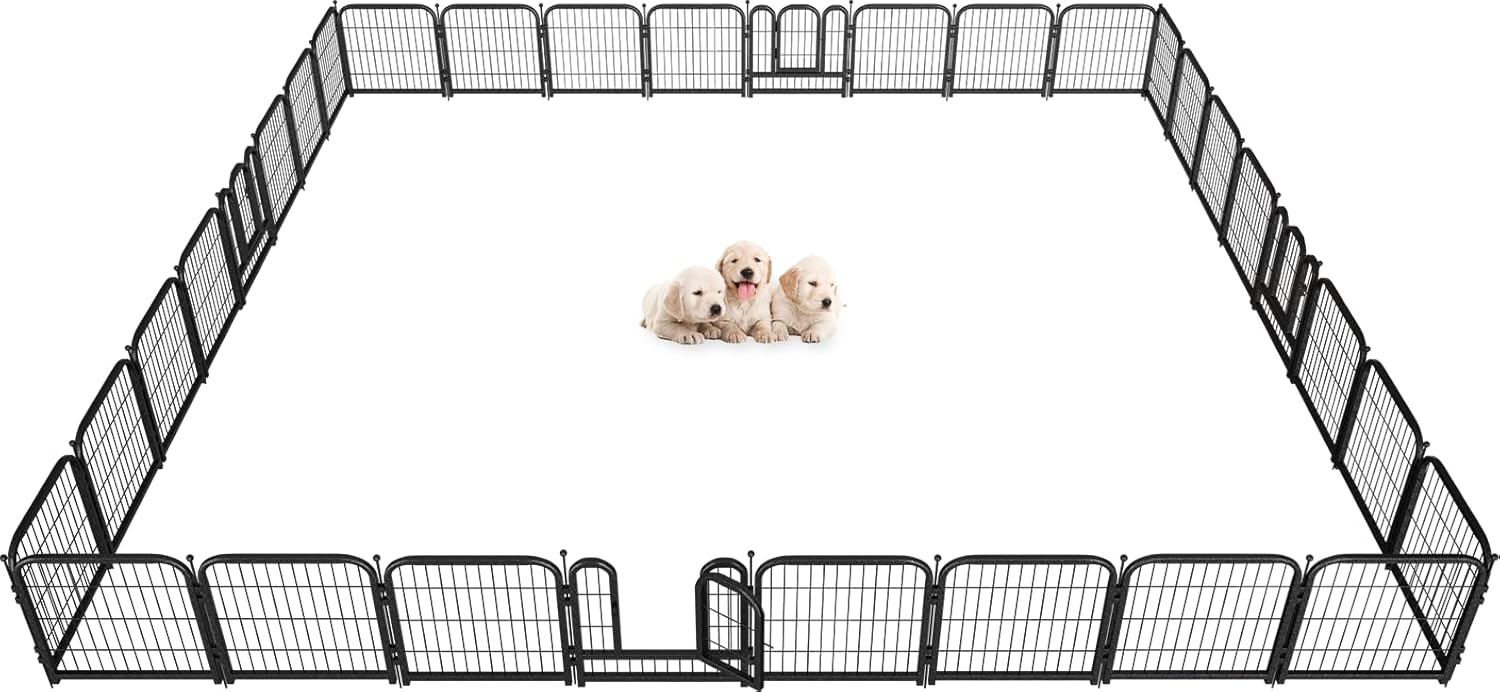 Metal Dog Playpen, 24 Inch Height 32 Panels, Ideal Dog Fence for Large/Medium/Small Dogs Indoor & Outdoor Bliss, Perfect Dog Pen for Camping, Yard, and RV | Black-Silver