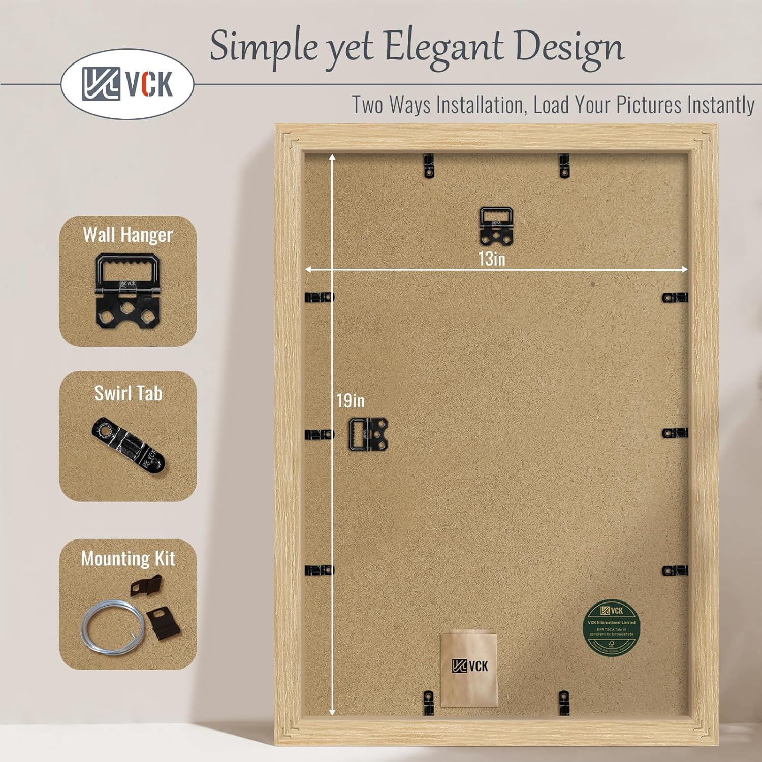 VCK 13x19 Oak Wood Frame for Poster & Picture, Natural Solid Wood Photo Frames 3 Pack, Wall Gallery Frame