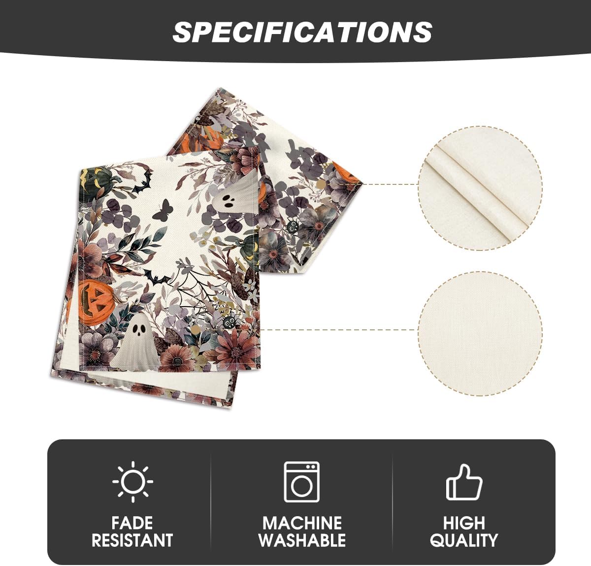 Artoid Mode Jack-O'-Lantern Pumpkin Floral Ghost Halloween Table Runner, Eucalyptus Kitchen Dining Table Decoration for Home Party Decor 13x72 Inch