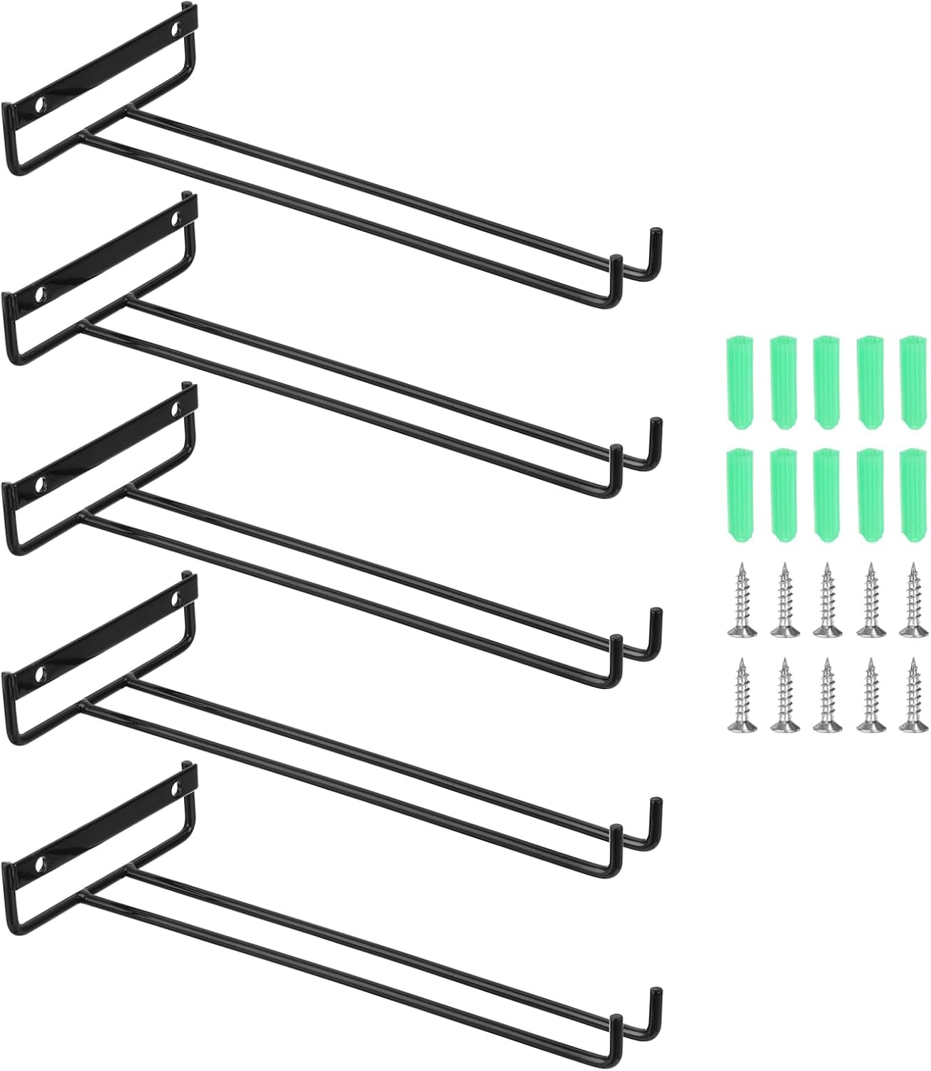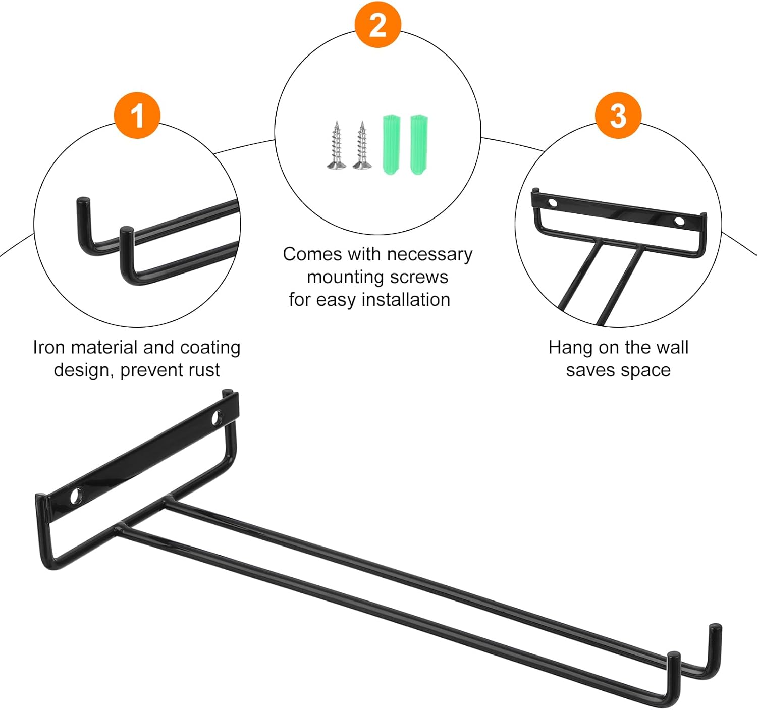 uxcell 5Pcs Wine Glass Rack, 10.43 Inch Iron Wine Glasses Rack Under Cabinet Stemware Rack - Wall Mountable Wine Glass Holder Storage Hanger for Bars Coffee Restaurants Kitchens, Black