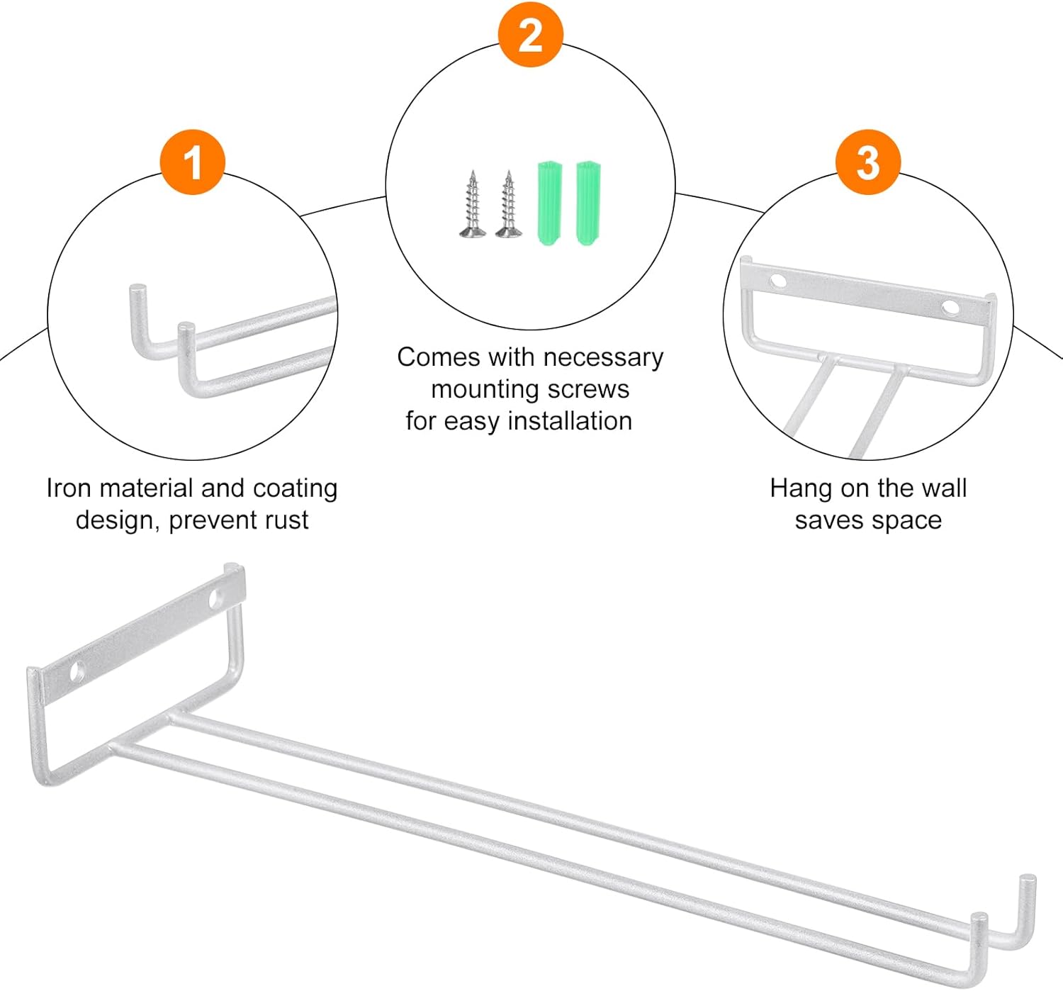 uxcell 5Pcs Wine Glass Rack, 11.81 Inch Iron Wine Glasses Rack Under Cabinet Stemware Rack - Wall Mountable Wine Glass Holder Storage Hanger for Bars Coffee Restaurants Kitchens, Silver
