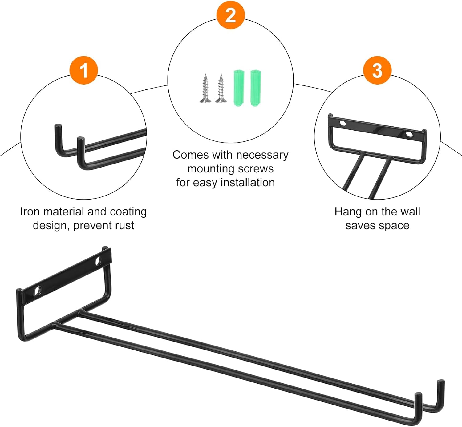 uxcell 5Pcs Wine Glass Rack, 11.81 Inch Iron Wine Glasses Rack Under Cabinet Stemware Rack - Wall Mountable Wine Glass Holder Storage Hanger for Bars Coffee Restaurants Kitchens, Black