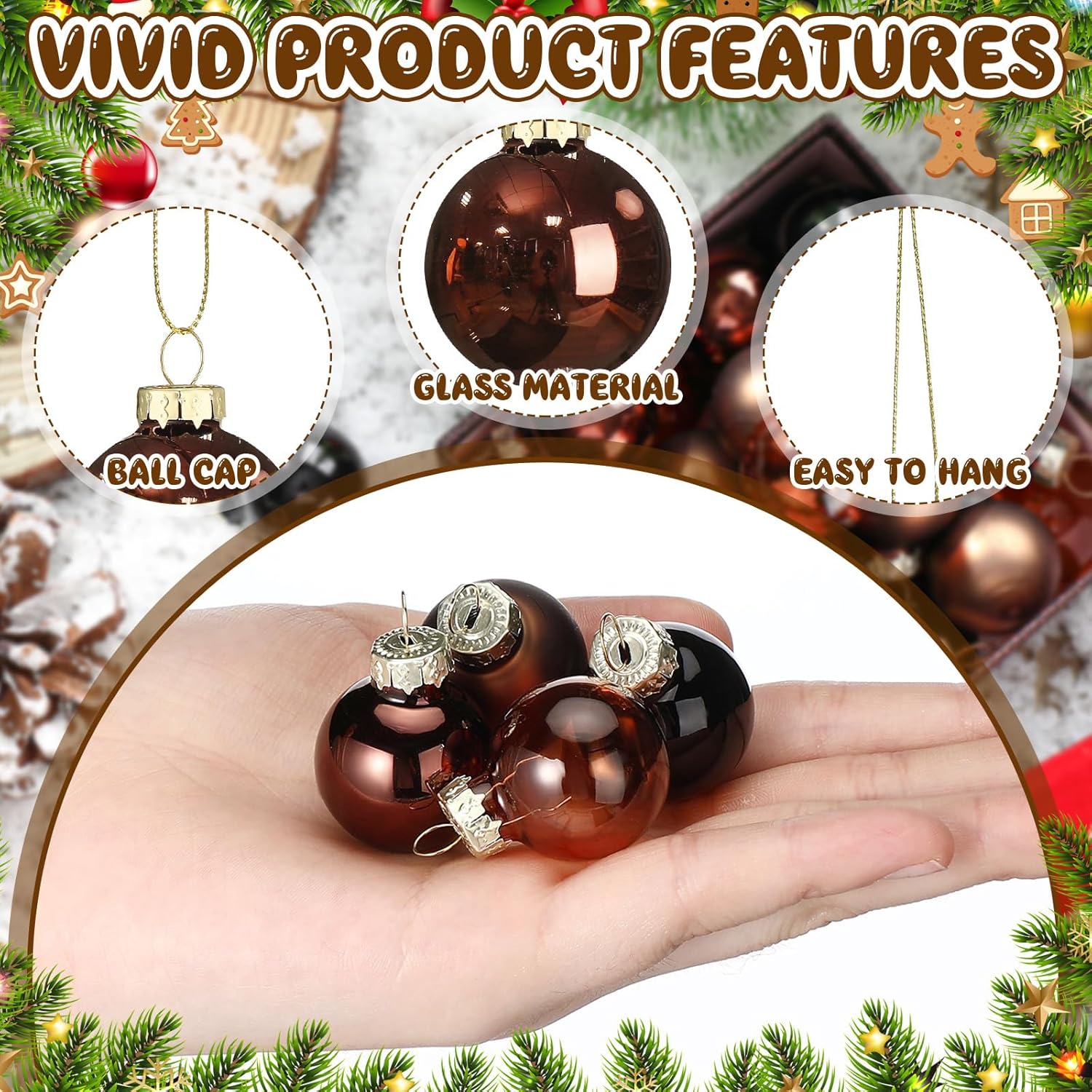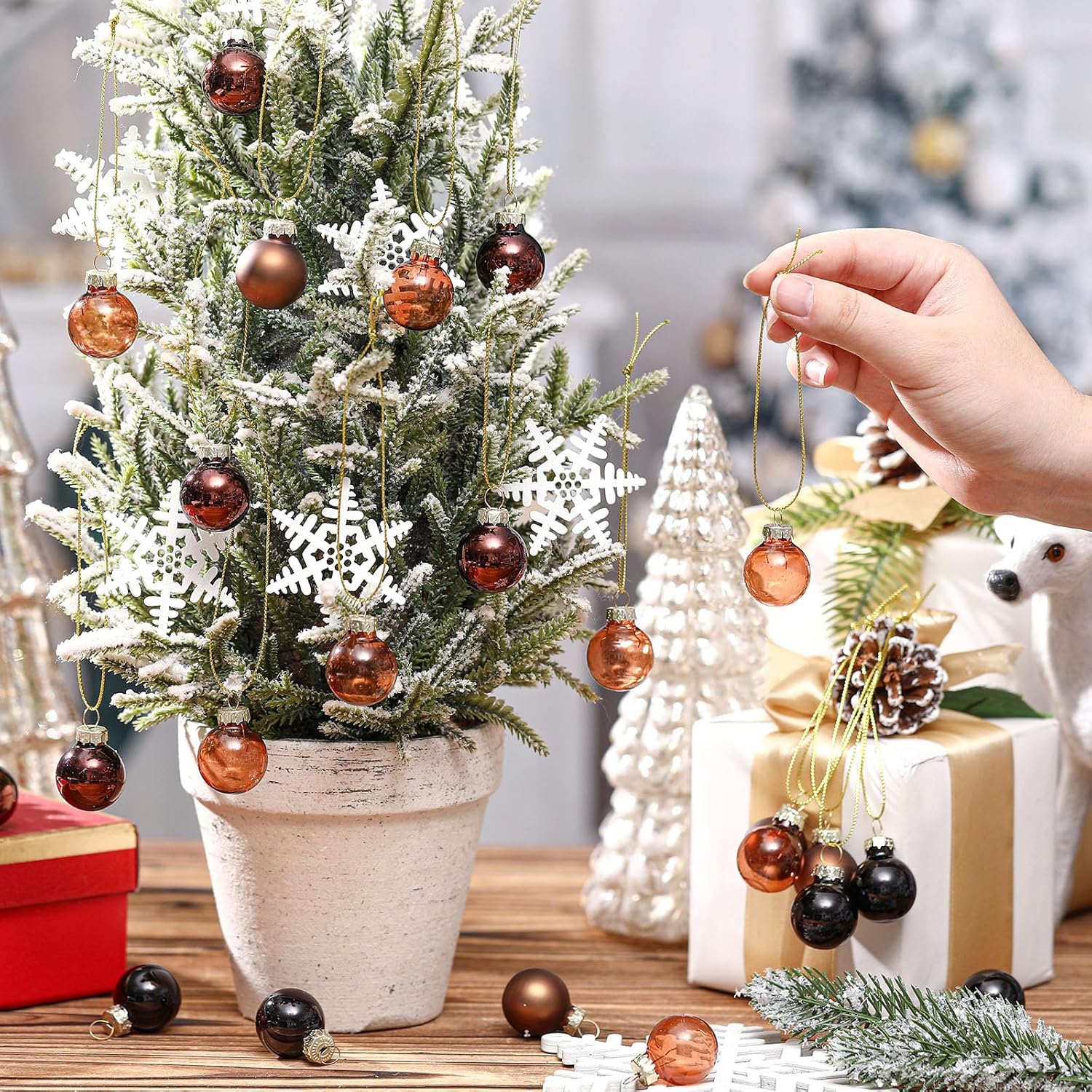 Tioncy 32 Pcs 1 Inch Mini Glass Christmas Ornaments Balls Shiny Christmas Balls Tiny Tree Hanging Decoration Small Colorful Ball Pendant for Xmas Party Supplies(Multi Brown, Black)