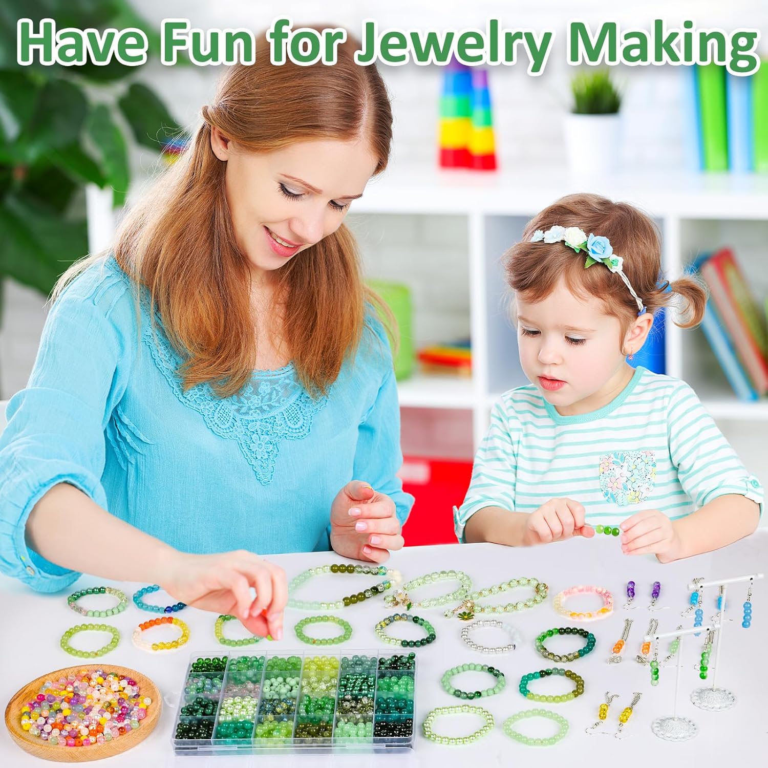 XSEINO About 1200PCS 6mm Glass Beads Bracelet Making Kit,24 Assorted Green Nature Series Colorful Crystal Beads for Bracelet and Jewelry Making and DIY Crafts,Friendship Bracelets