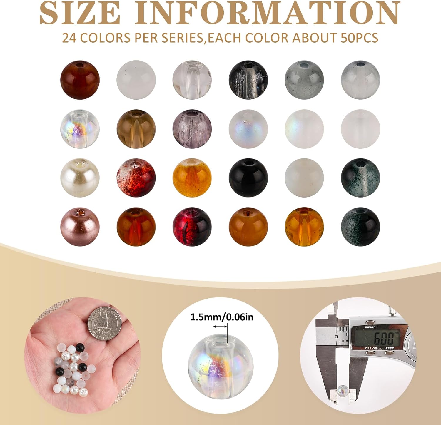 - 【Vibrant Colors】:These 6mm round glass beads are made of high-quality glass material and available in 24 colors. The round glass beads look jade texture, great for decorating your craft.
