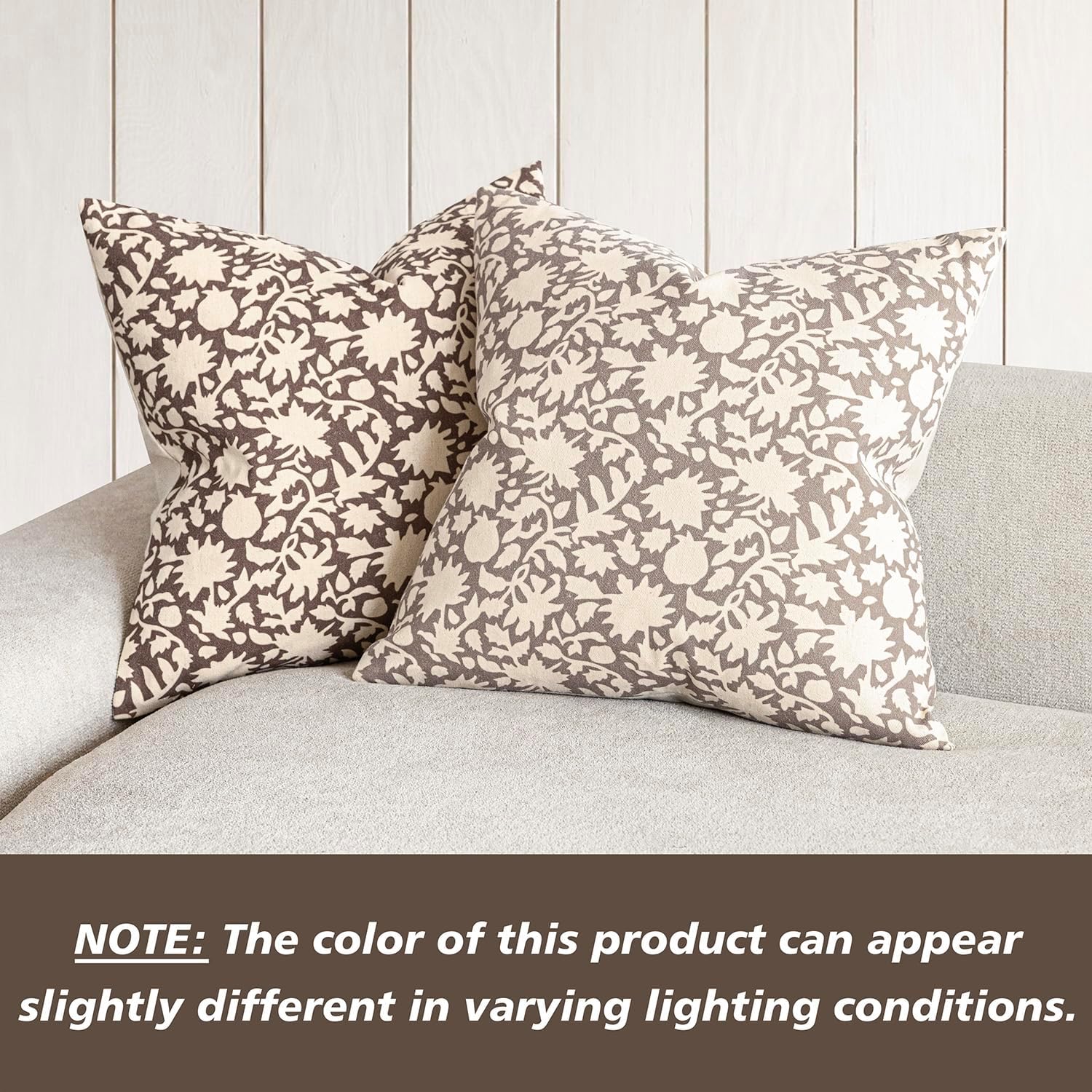 Foindtower Set of 2 Decorative Neutral Floral Throw Pillow Covers Accent Farmhouse Cushion Covers Boho Vintage Pillowcase for Couch Sofa Bedroom Living Room Home Decor Outdoor,20×20 Inch,Brown
