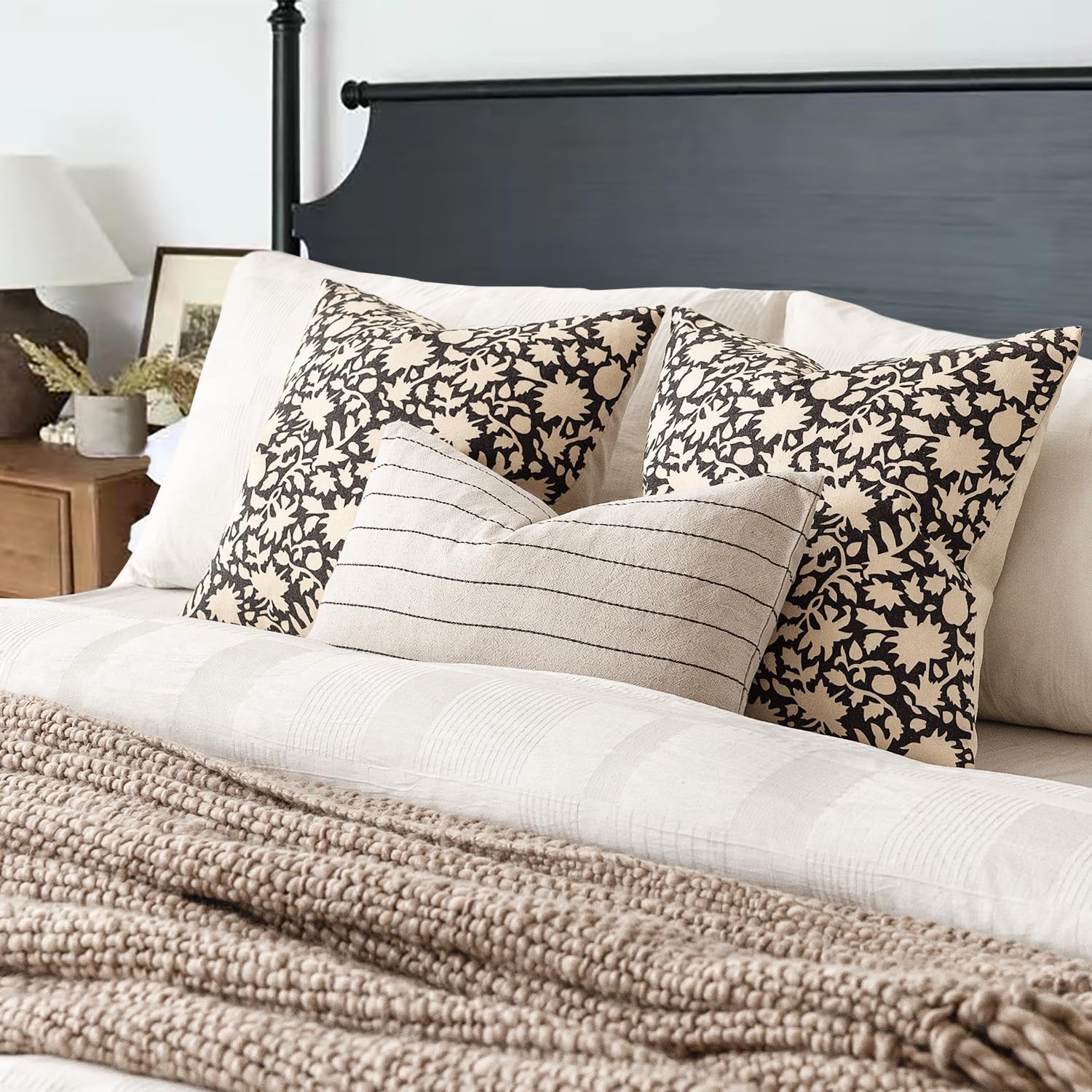 Foindtower Set of 2 Decorative Neutral Floral Throw Pillow Covers Accent Farmhouse Cushion Covers Boho Vintage Pillowcase for Couch Sofa Bedroom Living Room Home Decor Outdoor20×20 Inch,Black
