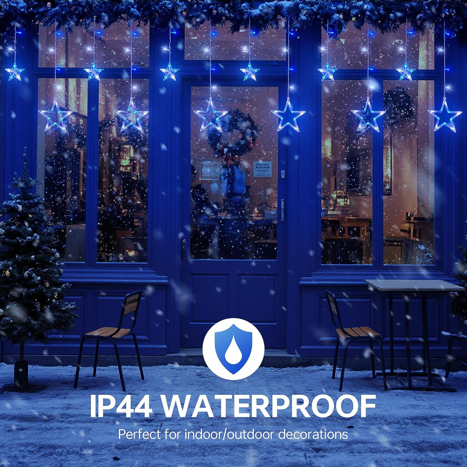 - Popular Choice &Widely Used:The Blue White star Icicle Lights are one of the most popular color options for Christmas decor.It can maximum connect with 3 sets lights extended in the mean time for more large scene display,suitable for the house eaves,party,wedding,patio,holiday,garden,ceilings,shopping center decorations.